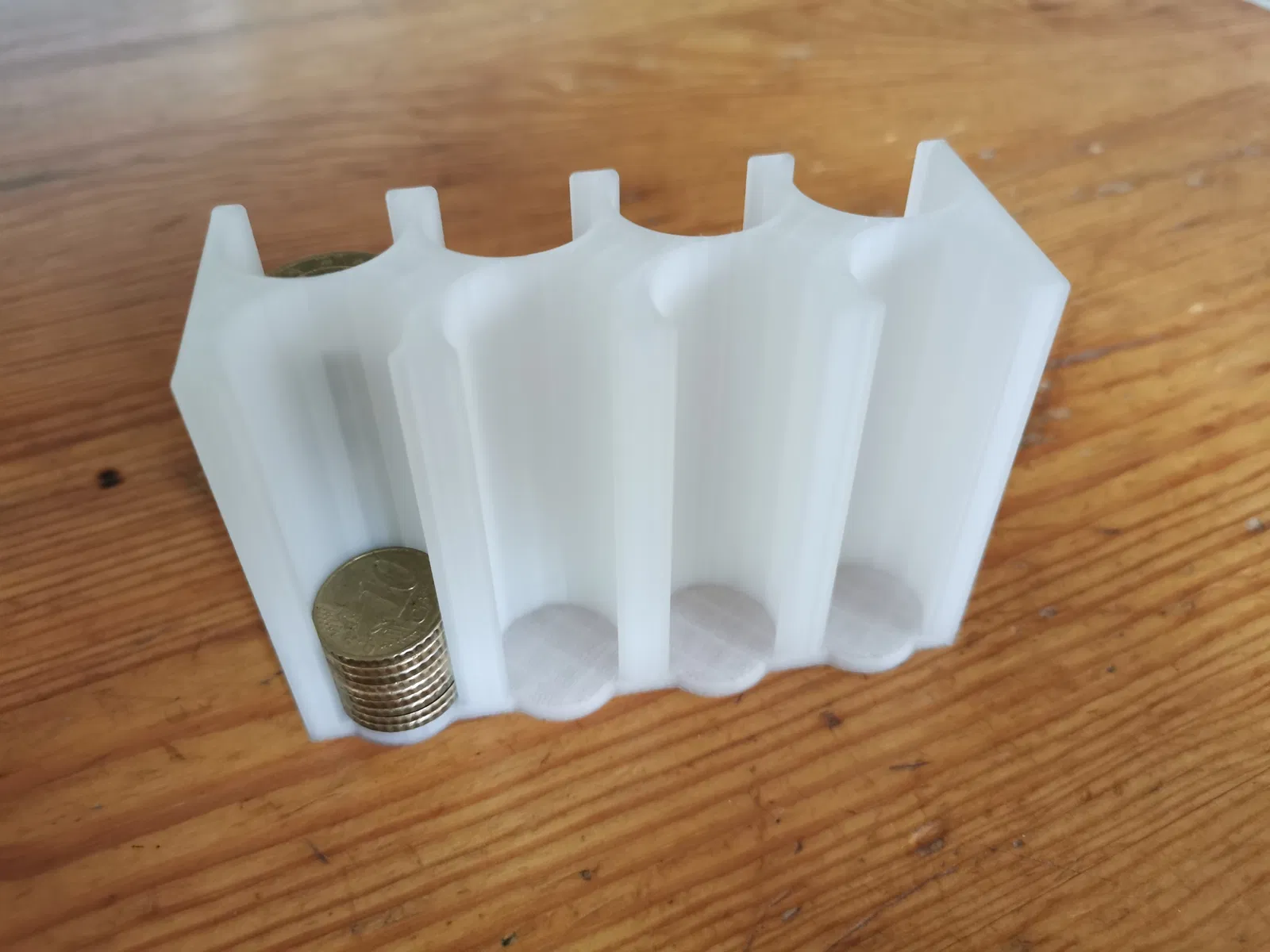 Đây là một khay sắp xếp dành cho các đồng xu euro 20 cents và 10 cents của bạn. Có bốn ngăn cho 20 cents và bốn ngăn cho 10 cents. Tất cả đều có thể in mà không cần support nào.