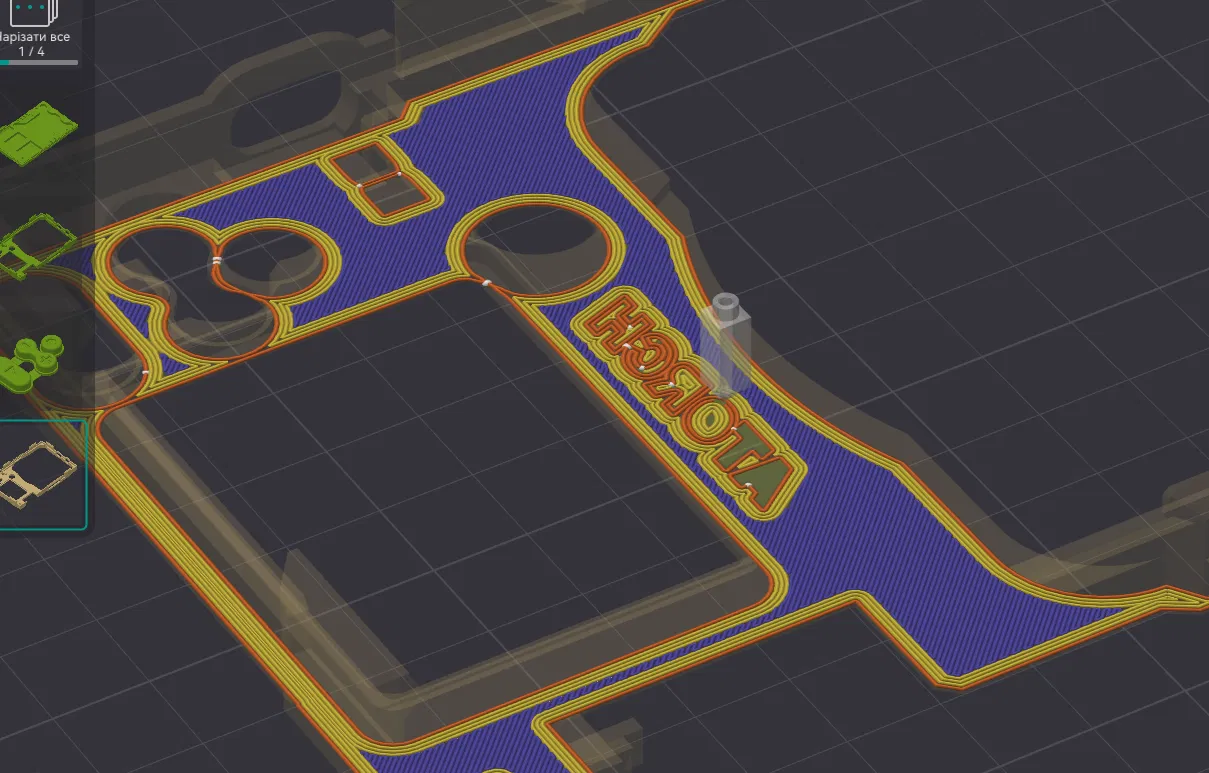 Để in phần chữ/inscription bằng màu khác, bạn cần tách (split) model này thành nhiều phần và chọn nhựa thứ hai trong slicer.