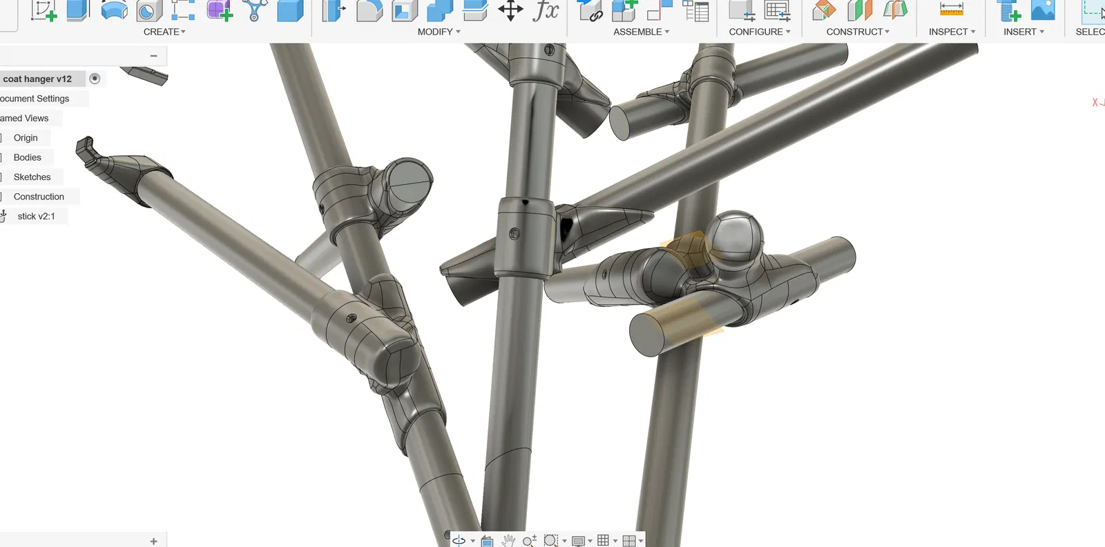 Mẫu móc treo áo DIY dễ làm tại nhà, chắc chắn và đẹp mắt, phù hợp cho mọi người. Dùng 6 cán chổi thường 23 mm và 25 vít 4x12 để lắp ráp nhanh gọn, thiết kế dựng trên Fusion 360.