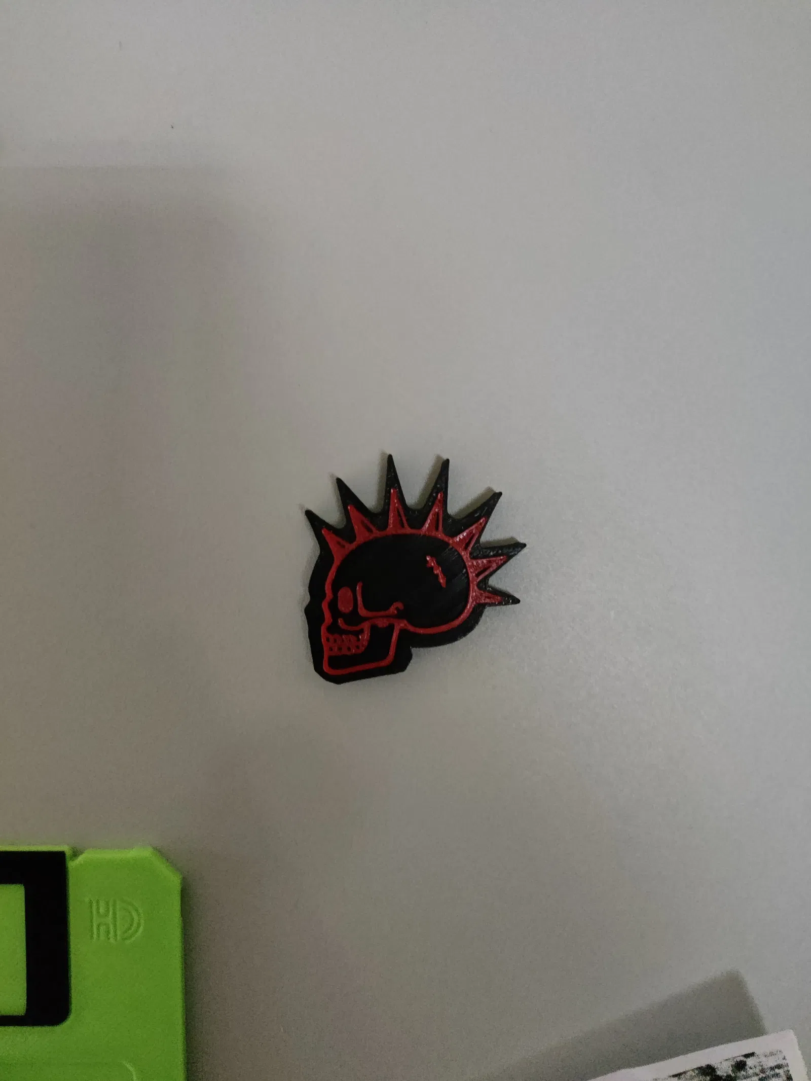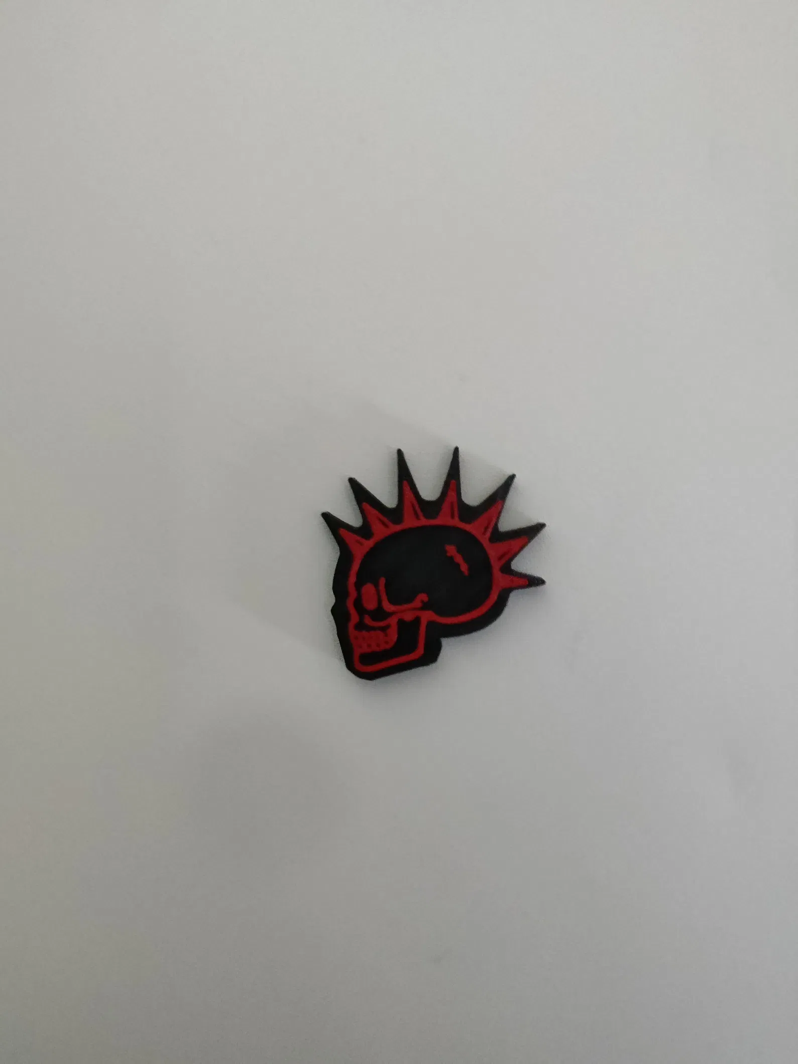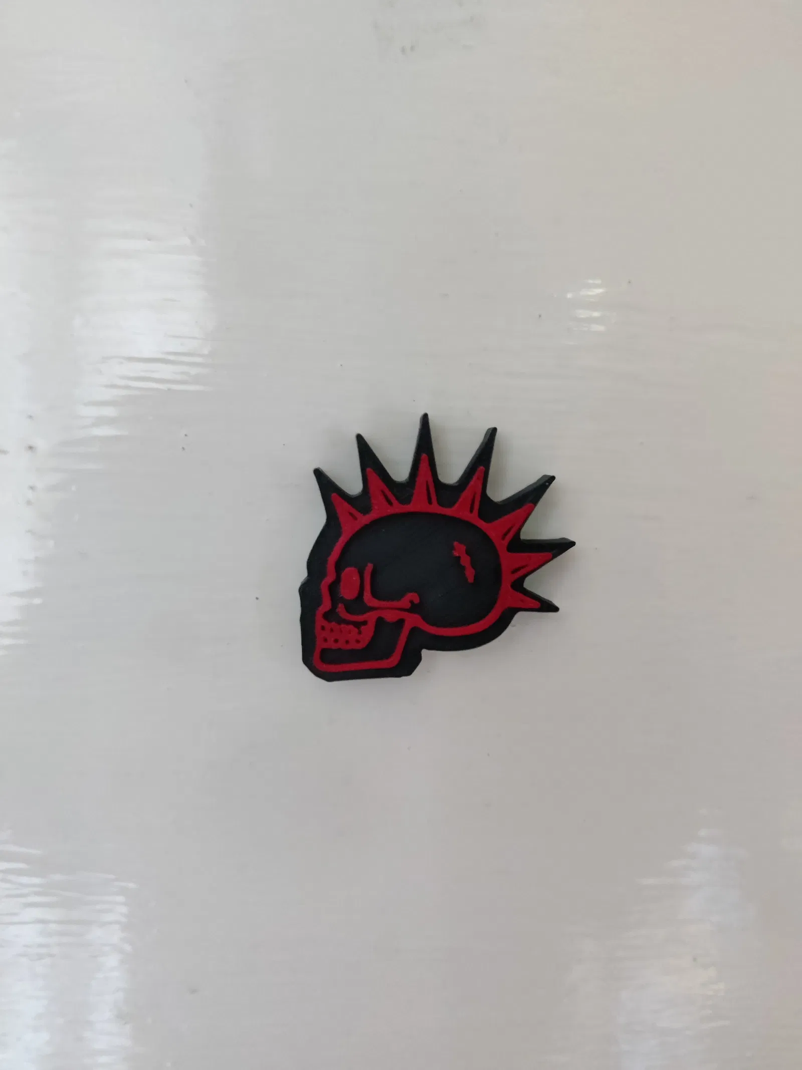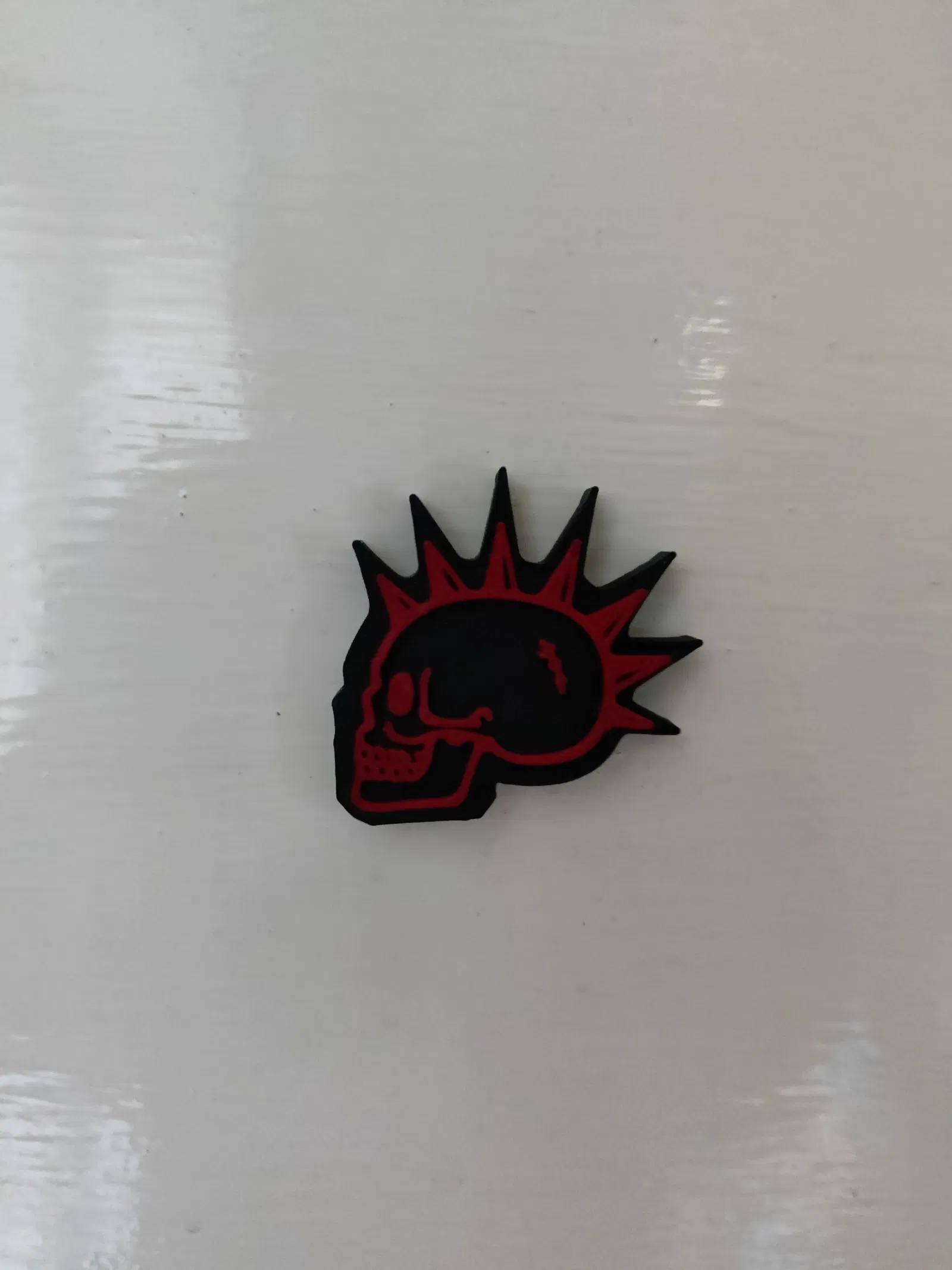 Mẫu nam châm Skull Punk: tạm dừng in ở mốc 14:55 để thay filament, tạo hiệu ứng 2 tông màu. Mặt sau có rãnh gắn nam châm kích thước 6x3 mm, tiện dán lên nhiều bề mặt.