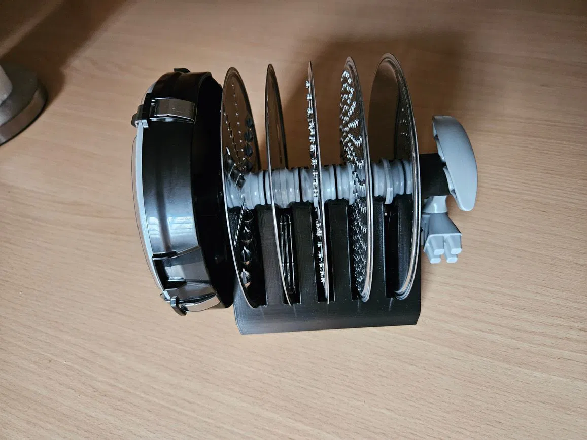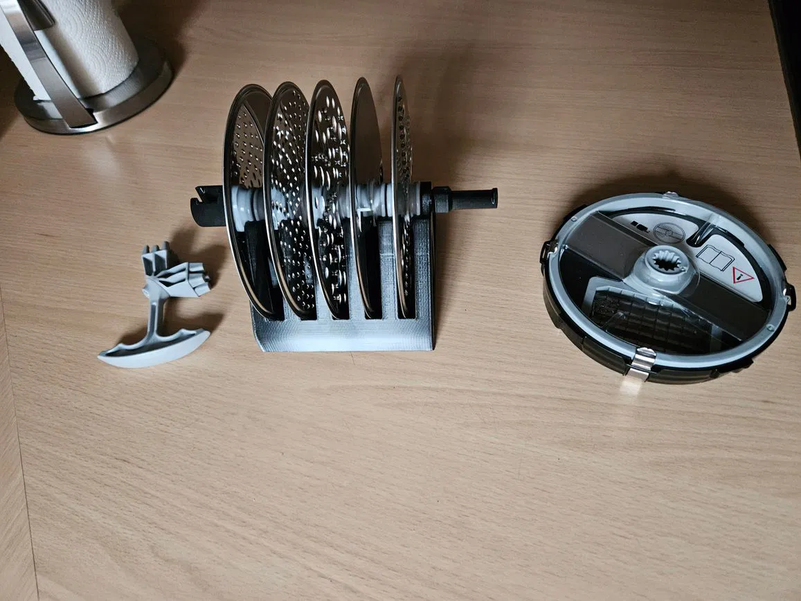 This cutting disc holder for Bosch MUM OptiMUM was created by Honza Dohnal. I have also added two holders for the MUZS68CC dicer + cutting grid cleaner.