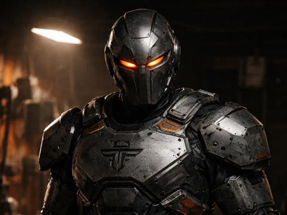 Mô hình 3D Iron Forge (nhân vật gốc tự tạo) dạng action figure giáp sci-fi tông tối, độ chi tiết cao. Giáp phong trần kiểu chiến trận, nhiều panel và chi tiết cơ khí, tối ưu để in sạch, rất hợp trưng bày, sơn và custom.