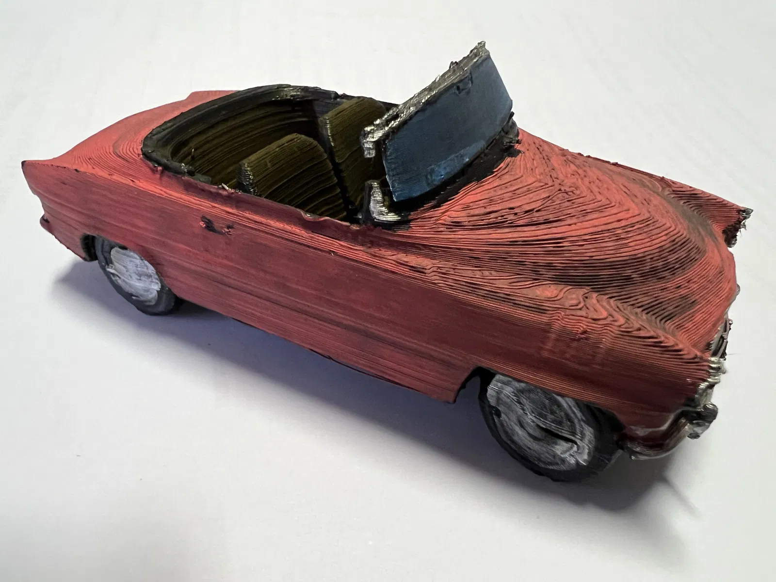 Mình in mẫu này có dùng support (cả bên trong khoang cabin). Lúc gỡ support thì tiếc là mình làm gãy luôn cái vô-lăng. Ngoài ra thì model trong file STL vẫn đầy đủ, hoàn chỉnh.