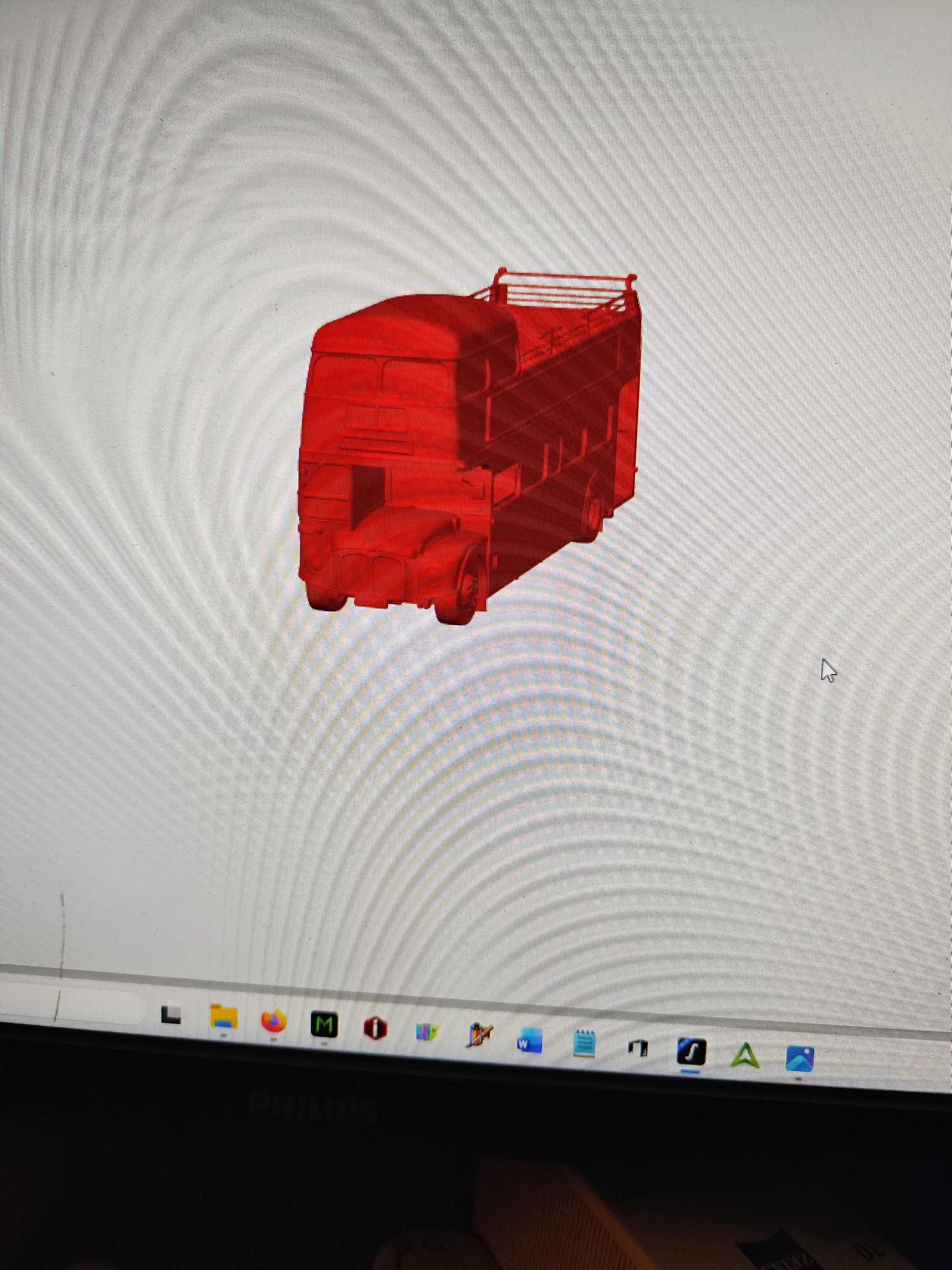 Khay để bàn dạng desktop organiser mô phỏng xe buýt 2 tầng kiểu Anh. Có chừa/đục một ô cửa sổ phía trước để dễ lấy đồ nếu bị kẹt. Có thể scale theo kích thước bàn hoặc theo vật dụng bạn muốn đựng.