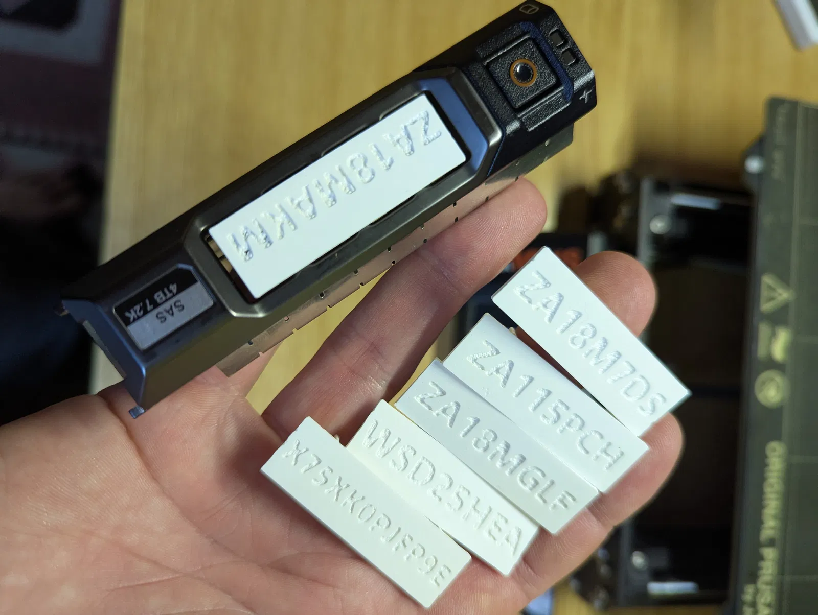 Tag nhãn dạng kẹp đơn giản cho khay HDD Dell 3.5 13G, có thể tùy biến chữ bằng cách emboss (thêm negative-volume trong PrusaSlicer) hoặc ghi bằng sharpie. In 0.5mm depth đẹp, không cần supports và không có infill.