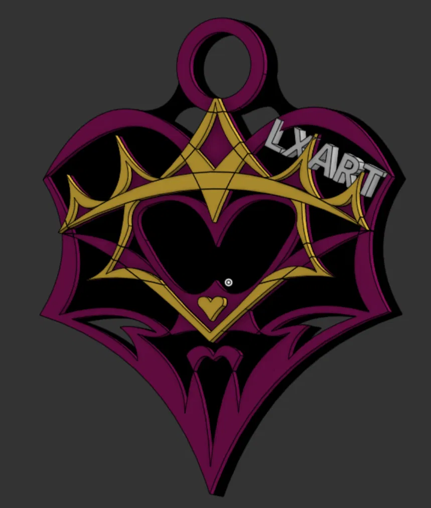 Mẫu móc khóa gốc do mình tự thiết kế, kết hợp hình con mắt với biểu tượng Nữ hoàng Cơ theo phong cách Gothic. Kích thước khoảng 40×45 mm, dày 4.5 mm. Tác giả gợi ý có thể in không cần supports và mong nhận góp ý.