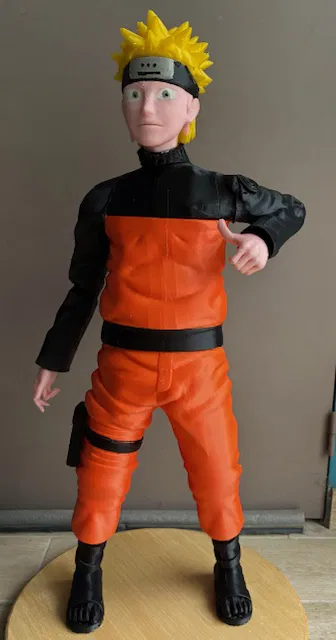 Bản in 3D tượng Naruto cao 70 cm. Mẫu được chia cắt và ghép nhiều phần để đổi màu theo từng đoạn, hoàn thiện với chiều cao tổng 70 cm, phù hợp trưng bày kích thước lớn.