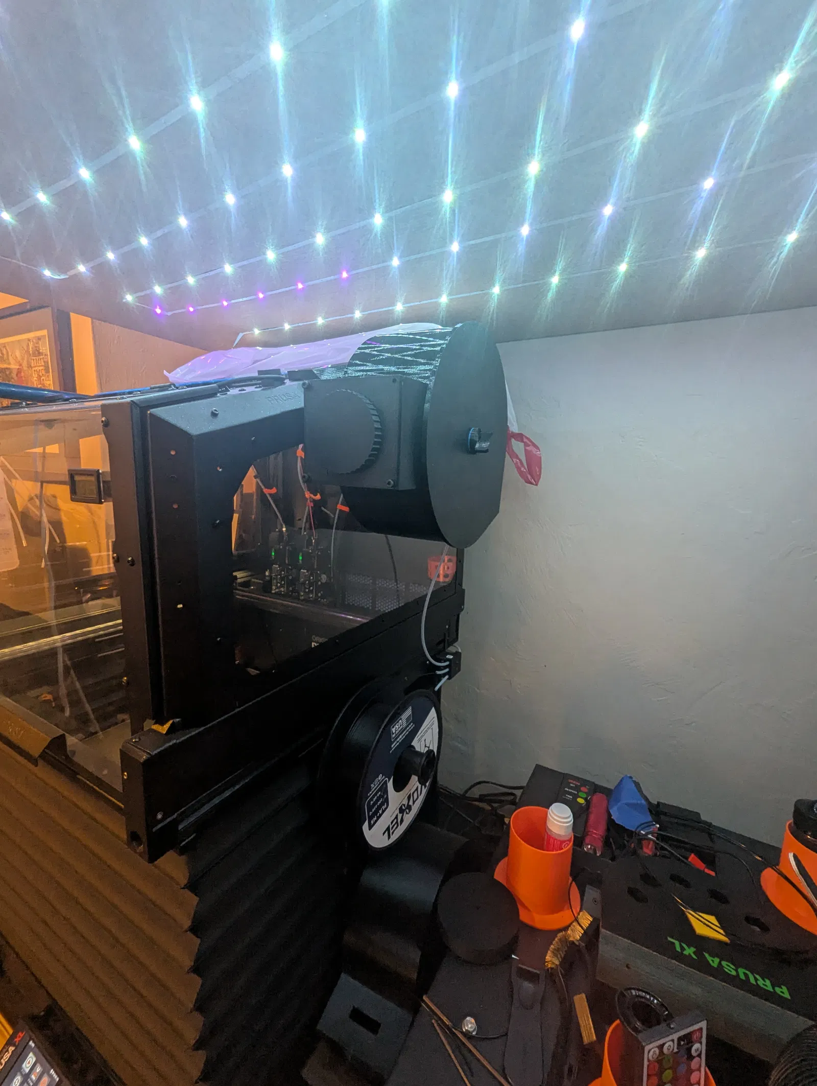 -Bạn cũng sẽ cần vít cho adapter gắn lên Prusa Original Enclosure, hiện tại mình không nhớ đúng kích thước. Nó sẽ gắn đúng vị trí mà dải LED thứ hai sẽ lắp vào, và có thể bố trí thêm một Dry Box thứ ba gọn gàng ở bên trái máy in.