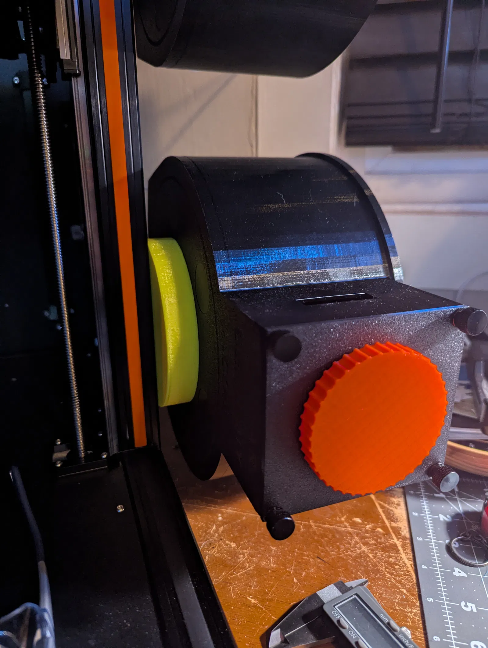 Mình đã thiết kế và in ra một bộ Dry Box hoạt động ngon lành, gắn ở bên hông Prusa XL của bạn. Hiện tại nó có thể chứa 4 cuộn (spool) khá dễ dàng khi không dùng Prusa Original Enclosure, nhưng nếu không có original enclosure hoặc bạn đang dùng enclosure bên thứ ba thì sẽ hơi chật. Mình đã kèm nhiều hình và hy vọng sắp tới sẽ có bộ hướng dẫn rõ hơn hoặc link video hướng dẫn. Mình cũng đã set các chi tiết in để có thể multi material nếu bạn muốn thêm gioăng TPU. Cá nhân mình thấy không nhất thiết. Sẽ có lợi nếu bôi một chút wax lên các phần ren, ví dụ như hộp/chai chứa desiccant. Có một số phần hardware thêm là bắt buộc.