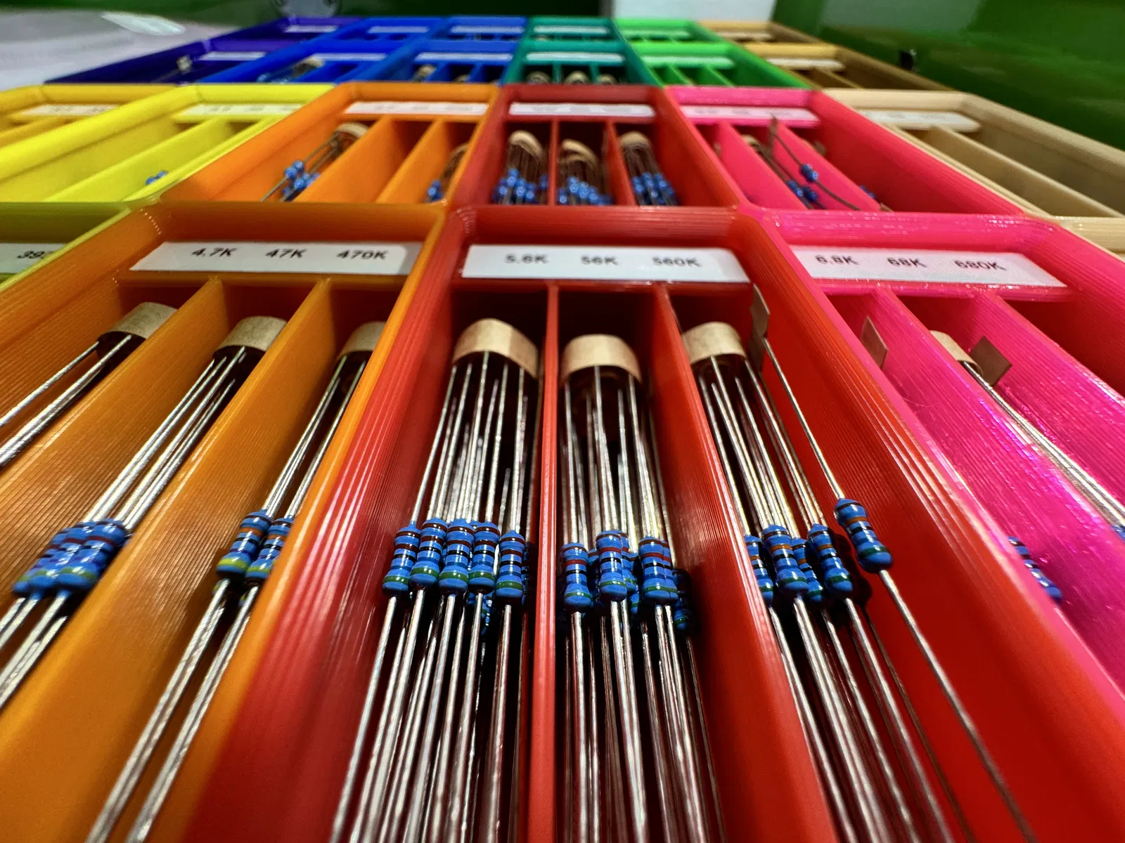 Giá mà Bob có mấy cái khay điện trở xếp chồng này—gọn gàng, có nhãn, lấy phát là xài. Chắc ổng vẫn còn tóc, còn thở, và giờ này có khi đang làm lon bia rồi. Đừng có như Bob. Cứu nguy (và biết đâu cứu luôn mạng mình) bằng cách quản cho gọn đám điện trở với mấy cái khay tiện dụng này.