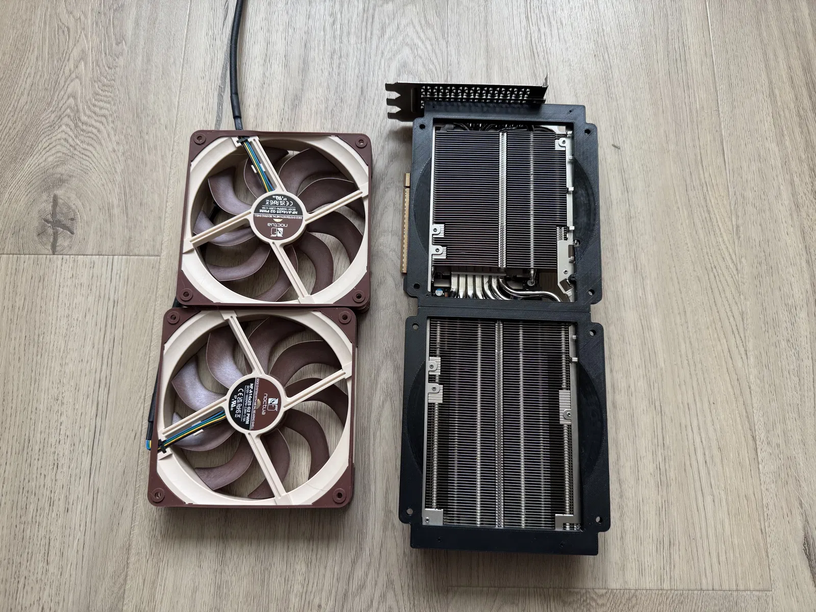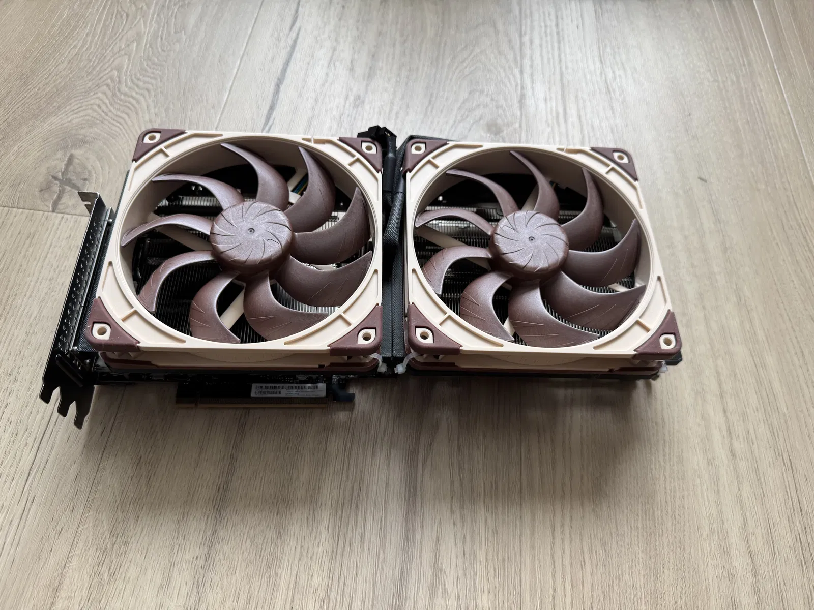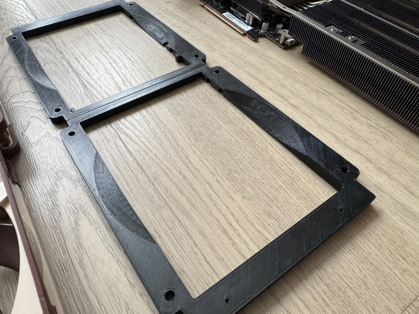 Mẫu giá đỡ quạt giúp gắn 2 quạt 140mm lên card PNY GeForce RTX 5080 (deshroud). Có thể cố định trực tiếp vào radiator bằng bộ ốc zin sẵn có, tiện lắp đặt và chắc chắn.