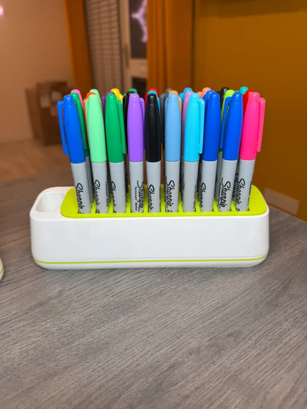 Đế cắm bút Cricut-pennen houder phù hợp cho tối đa 30 bút Cricut hoặc bút hãng khác. Tối ưu in multi-material với AMS: thân in màu tùy chọn, dải nhấn & logo dùng filament tương phản; tấm trên in riêng rồi dán.