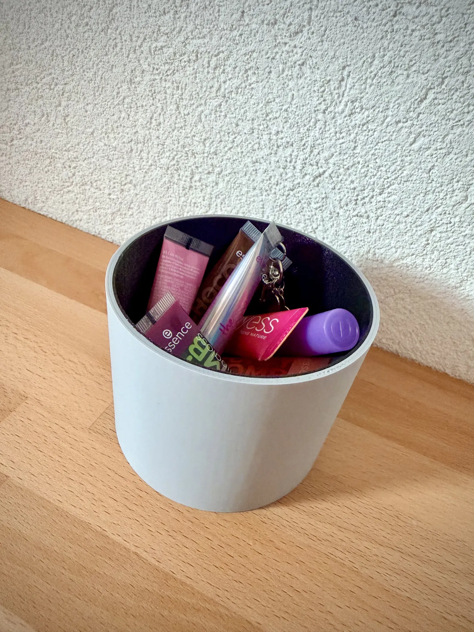 Mẫu ly đựng đồ modular với inlay màu in riêng, gắn vào sau để lên màu sạch đẹp. Chỉ cần đổi filament đơn giản, không cần MMU/AMS hay hệ multi-material. Hợp để đựng ốc vít, mũi bits, bút và đồ văn phòng.