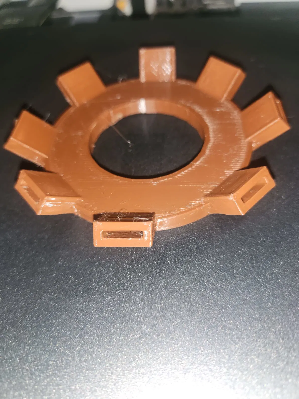 In phần đế và phần trên: In một miếng tròn đặc làm đế, và một miếng tròn có hai lỗ (thiết kế để luồn dây điện hoặc dây treo để treo từ trần).