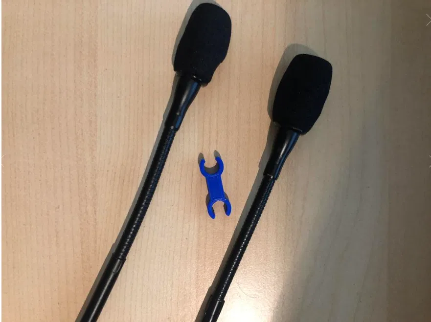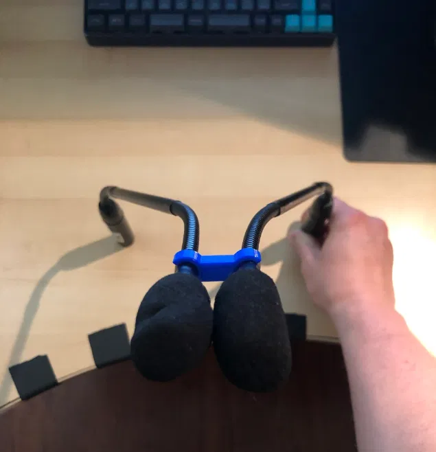 Mình muốn có giải pháp nhìn gọn gàng hơn để giữ mic bục phát biểu theo kiểu “Presidential Mic” thay vì quấn băng keo vải (gaff tape). Thế là cái clip nhỏ này ra đời. In tối ưu nhất là màu đen. Luồn phần cổ mic mềm vào khe mở ở mỗi bên, rồi trượt clip lên sát bên dưới phần đế của mic capsule để đạt hiệu quả tốt nhất. Kẹp giữ hai mic rất chắc chắn.