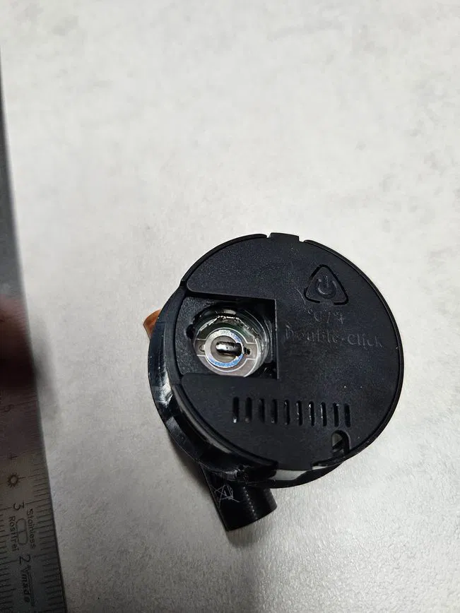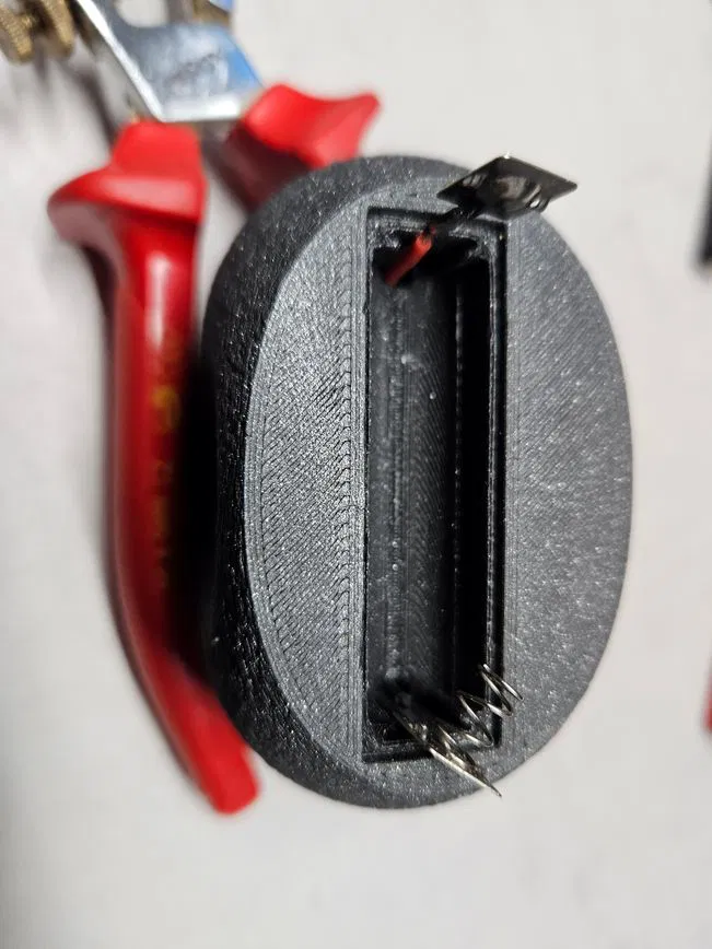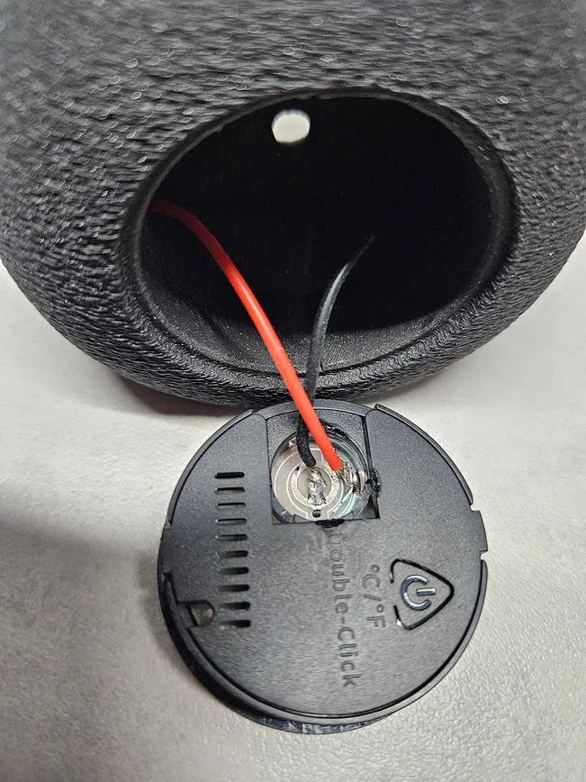 Giá đỡ đẹp mắt cho loại hygrometer-thermometer tròn, thiết kế nghiêng 80° và dùng pin AAA. Thông số in PLA (layer 0.1, nozzle 0.4), có modifier/support reinforcement và bề mặt fuzzy skin.