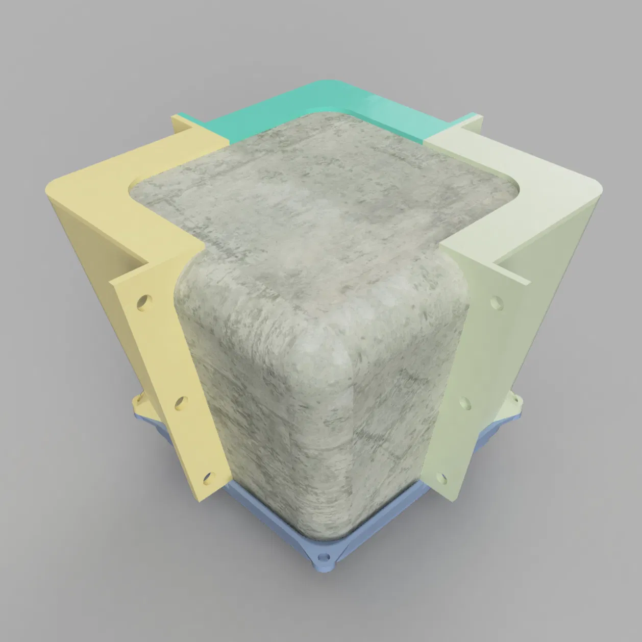 Để làm được, bạn sẽ cần vài con ốc M44 con ốc M3. Cách này thật ra không lý tưởng; lẽ ra thiết kế dùng kẹp (clamps) sẽ hay hơn, nhưng mình chưa từng làm khuôn (mold) bao giờ. Nhớ chà nhámbôi trơn thành khuôn trước khi đổ.