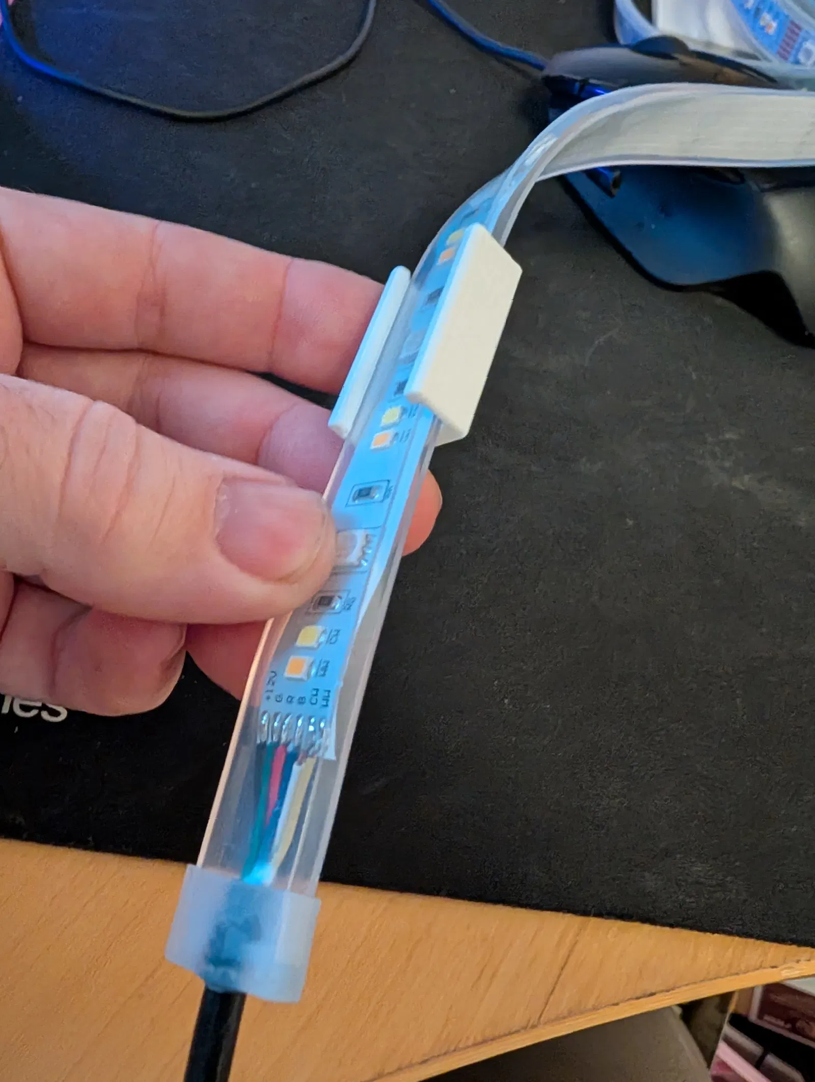 Sau khi bắt cố định holder, dải LED có thể gắn vào và tháo ra rất dễ.