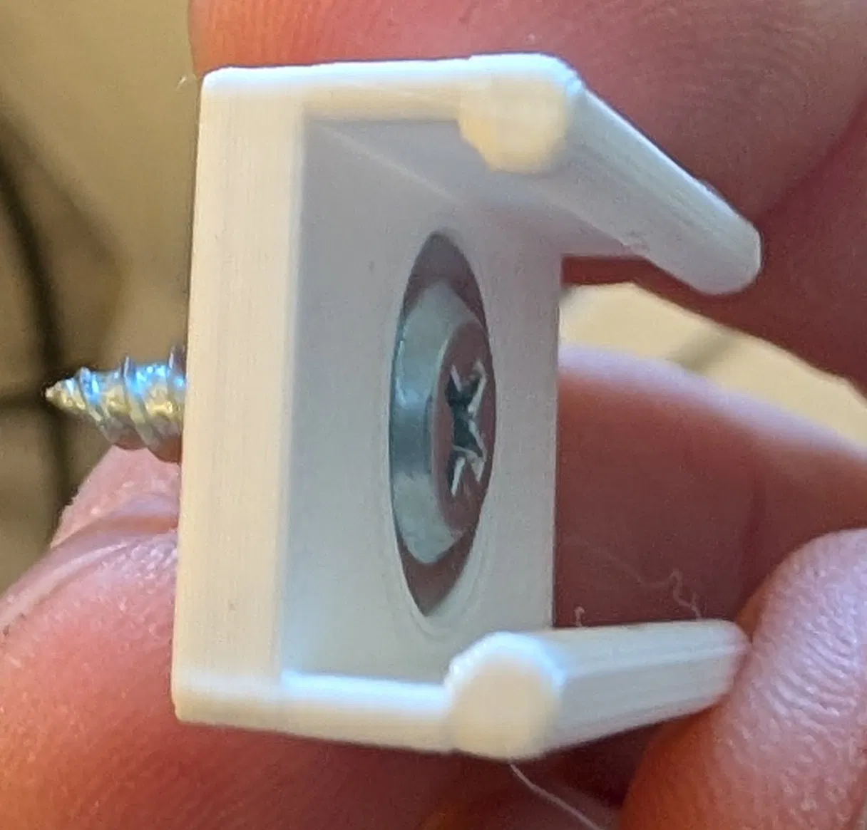 Dải LED JULA "Anslut" loại không kèm băng keo hai mặt để cố định thì có vài cái holder, nhưng mình muốn in thêm cho đủ, và cũng muốn loại dùng được với vít to hơn. Mình có mấy con vít lắp (montage screws) vừa khít với thiết kế này.