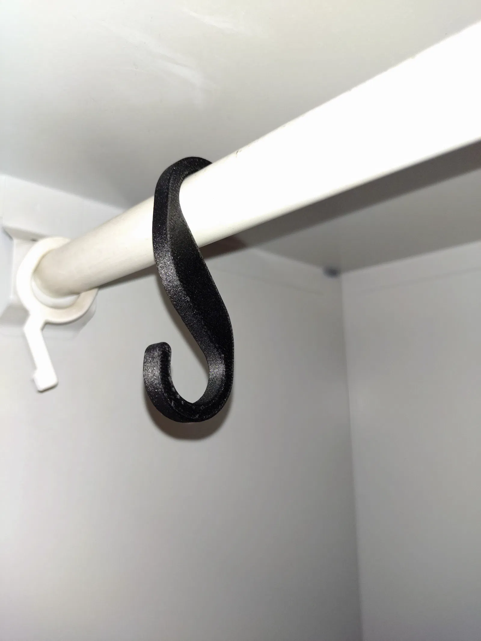 Mẫu móc treo đơn giản cho tủ áo khoác, có ống để treo móc áo, phù hợp cho ống đường kính tối đa 18 mm. Tác giả in bằng PA CF cho độ cứng tốt; PLA và PTGE có thể hơi mềm.