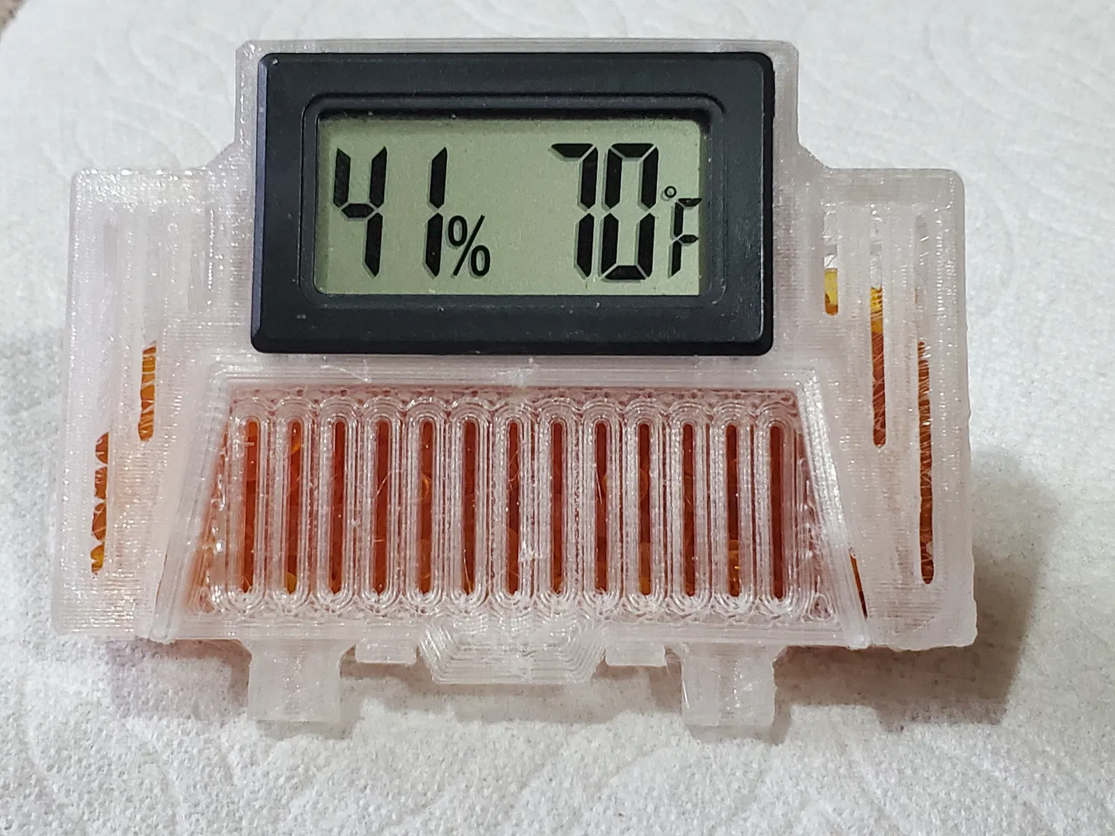 Phiên bản 3 của bản remix. Mình làm phần thân ngoài cứng cáp hơn, thêm các vách chặn bên trong để bít bớt rãnh slot grooves, đặt vents ở tất cả các mặt, nghiêng phần “toe” phía đáy 5 độ để hộp không bị ngả về sau trong box, và bổ sung vật liệu ở khu “toe” để bám vào các khe của dryer chắc hơn rất rất nhiều. Bản này là P-I-P, không cần support hay brim, chỉ cần đảm bảo first layer ngon. Đi chậm ở vài lớp đầu. Mình dùng PETG trong để nhìn được desiccant đổi màu và nhìn xuyên qua rất rõ. Nếu cần, mình cũng up thêm một file có phần cutaway nếu bạn muốn/cần dùng brim. Phần cutaway giúp slicer không đắp brim chèn vào vùng vents.