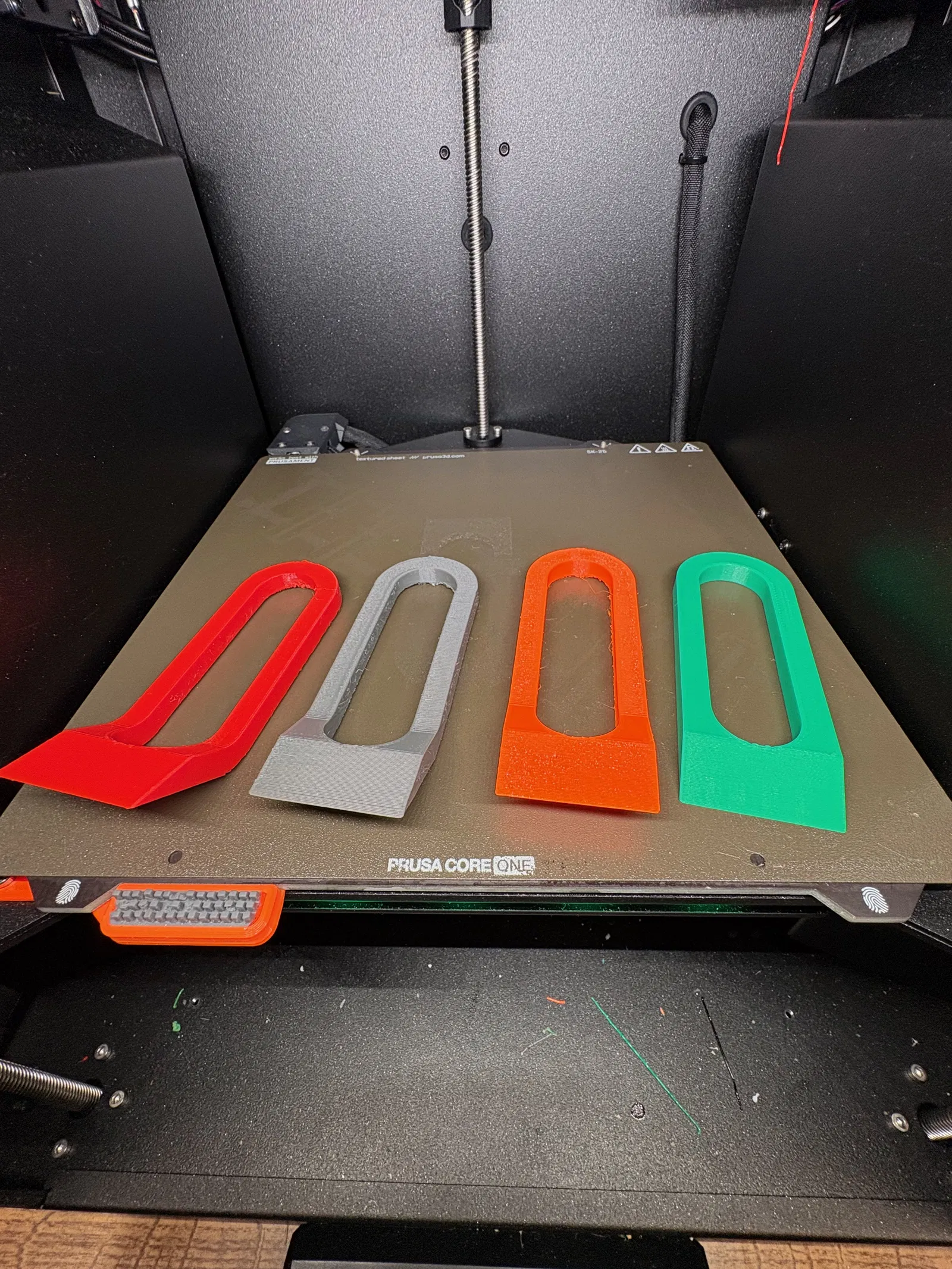 Một bộ sưu tập nhiều mẫu heat bed scraper với tay cầm nghiêng, giúp lưỡi scraper nằm sát mặt heat bed hơn để gỡ sản phẩm in và vật liệu support dễ dàng hơn.