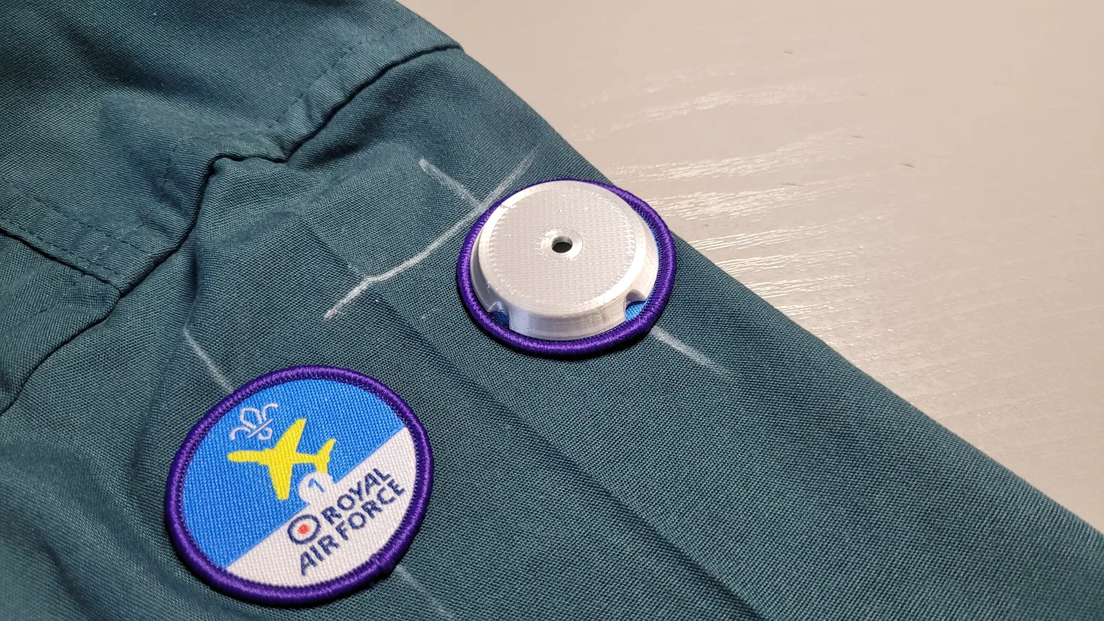 Bạn đặt một cái ở mặt trong của vải, rồi đặt badge lên trên, sau đó đặt thêm một cái nữa đè lên trên badge kiểu “sandwich”. Cái ở phía trong giúp tránh việc bạn may dính luôn hai lớp tay áo vào nhau, còn các phần khoét cho phép bạn canh badge theo các đường kẻ/đánh dấu bạn đã chuẩn bị sẵn. Bạn có thể chỉ cần giữ chúng ép lại với nhau, hoặc gắn nam châm 8x3mm để thỉnh thoảng có thể thả tay nghỉ một chút.