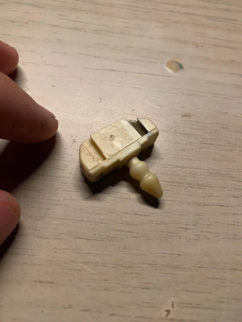 Gỡ phần bị gãy bằng cách nạy ra bằng tua vít, rồi lắp cái mới vào và chấm một ít epoxy hoặc silicone để cố định tại chỗ (có thể không cần).