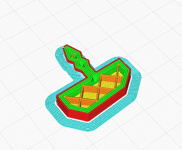 Dùng nhựa ABS và in chi tiết nằm phẳng trên mặt như trong hình và đúng hướng trong file, với ít nhất 4 walls để đạt độ bền tối đa.