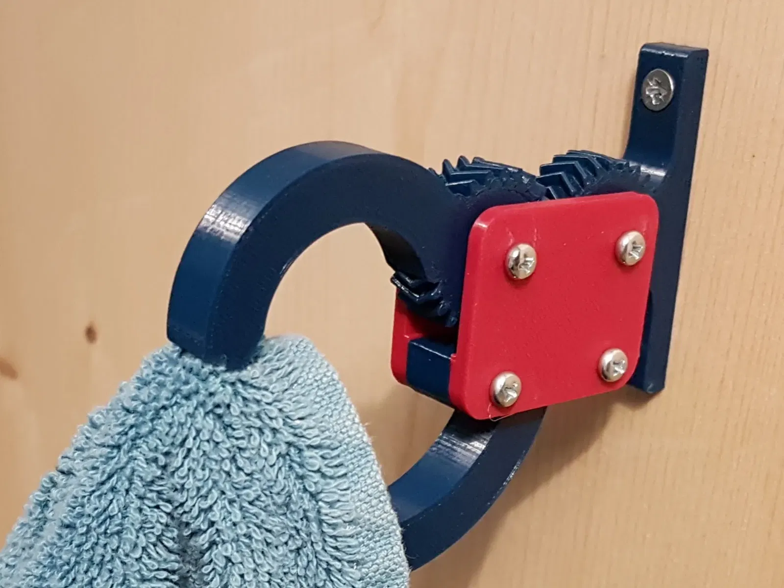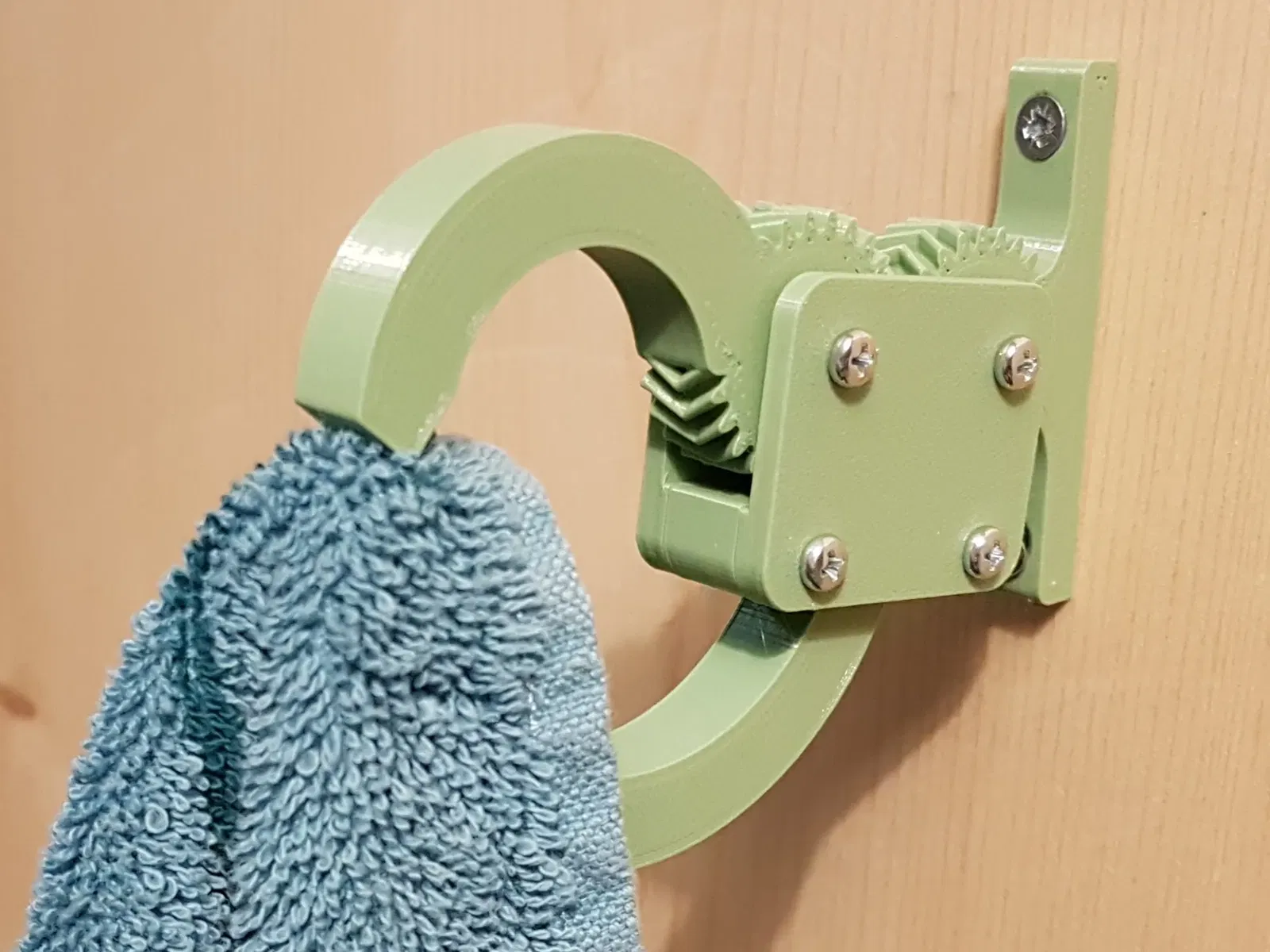 Trường hợp sử dụng Móc tự kẹp và tự thả này lý tưởng để treo khăn mà không có móc treo (hoặc có chủ sở hữu quá lười để sử dụng móc treo). Để treo khăn, chỉ cần chạm nhẹ vào cần gạt dưới từ dưới lên và nó sẽ nâng cần gạt trên lên một góc nhân đôi. Vì vậy, tổng thể, móc sẽ mở ra. Thả khăn và móc dưới, trọng lượng của khăn sẽ đè cần gạt trên xuống để khóa khăn một cách an toàn. Khăn càng nặng, cần gạt trên sẽ bị đè xuống càng mạnh để giữ chặt nó. Để thả khăn, bạn không cần chạm vào các cần gạt. Chỉ cần nâng khăn lên, nó sẽ nâng cần gạt trên cùng với nó và cần gạt dưới sẽ chỉ theo sau một cách marginal, tức là móc sẽ mở ra. #### Gắn nó vào bề mặt thẳng đứng Trong phiên bản gốc của bản in này, cách duy nhất để gắn nó vào bề mặt thẳng đứng là bằng cách bắt vít. Điều đó đã loại bỏ tất cả người dùng không thể khoan lỗ trên bề mặt dự định của họ, ví dụ như trên cửa tủ lạnh. Nhờ phản hồi tương ứng mà tôi nhận được, tôi đã thiết kế một tấm keo bổ sung và một phần bánh răng phù hợp. Phần bổ sung này có thể được tìm thấy ở đây: <> #### Tại sao lại là bánh răng hình xương cá? Loại bánh răng này khó sản xuất… trừ khi bạn đang in 3D… thì nó rất đơn giản. Vậy tại sao không tận dụng thực tế rằng chúng ta có thể dễ dàng sản xuất những phần phức tạp như vậy để có lợi cho mình? Thật sự rất thỏa mãn khi thấy bánh răng hình xương cá hoạt động ngay đầu tiên vào buổi sáng khi bạn đánh răng. #### Hai phiên bản, để bạn có thể chọn… Tôi không thể quyết định xem tôi muốn phần này thực tế hơn (thẳng) hay đẹp hơn (tròn). Vì vẻ đẹp nằm trong mắt của người nhìn, bạn có thể không đồng ý với tôi rằng phiên bản tròn nhìn đẹp hơn. Vì vậy, xin mời bạn và chọn phiên bản nào bạn thích hơn. #### In ấn Chỉ cần in tất cả các bộ phận theo hướng đã tải lên. Bạn không cần nhiều độ đặc (tôi thường sử dụng 15-25%) nhưng tôi khuyên bạn nên sử dụng ít nhất 3 (tốt hơn là 4) đường viền để làm cho các bộ phận đủ mạnh. Tôi thích Prusament PETG cho các bộ phận chức năng và khuyên dùng nó vì nhờ vào tính linh hoạt của nó, nó chấp nhận các vít mét ngay cả khi không có ren in. Đối với các tấm bên, tôi cũng đã thử PLA, cái này hoạt động tốt. Bạn cần in: - Hai mảnh tấm bên (nó đối xứng và hoạt động cho cả hai bên)