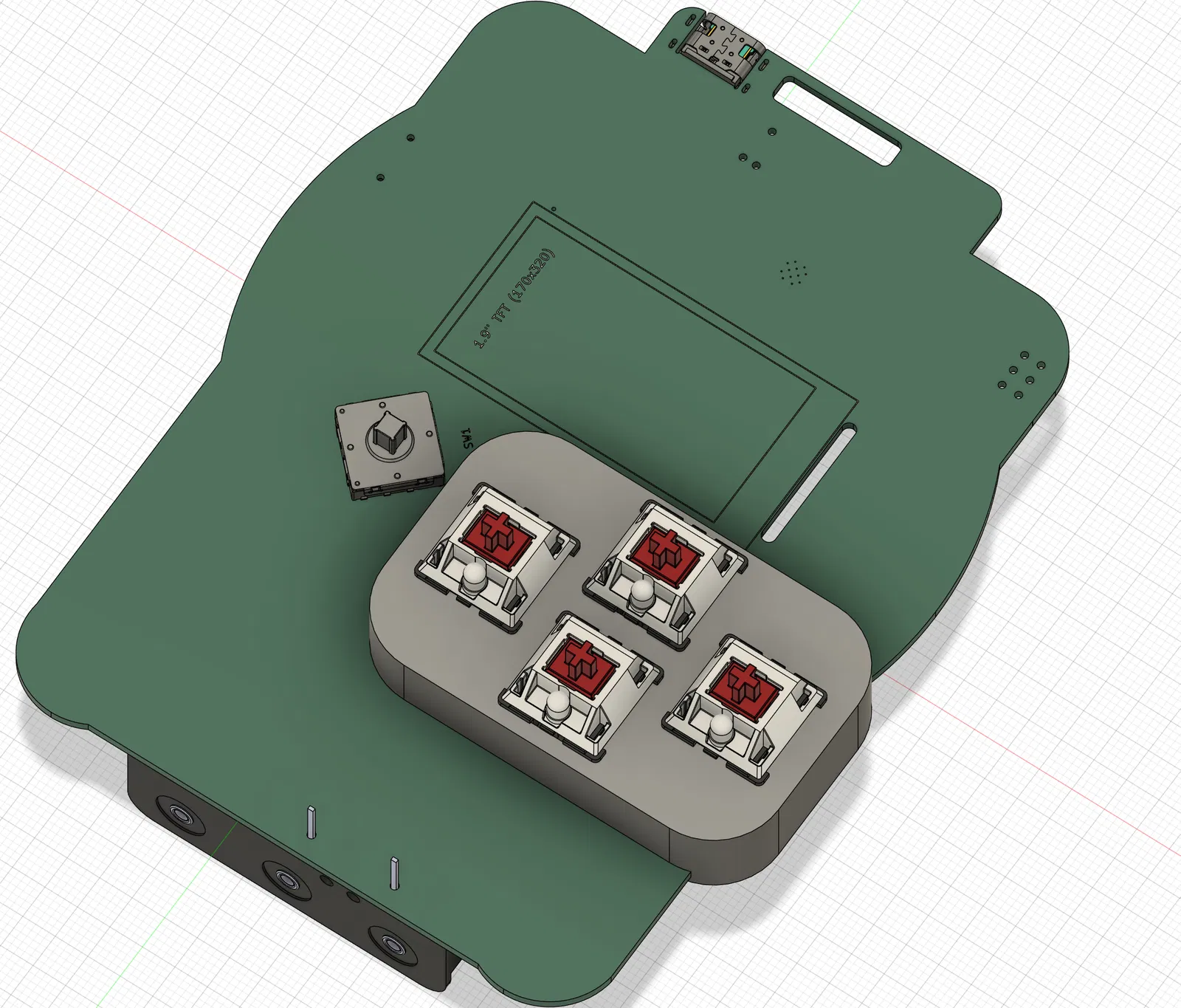 Mình lướt nhanh qua file STEP được cung cấp trước sự kiện và thấy một thứ kinh khủng. Ừ, chắc bạn cũng thấy rồi đó. Switch Alps SKPMAME-010. Ớn. Tưởng anh em bạn bè với nhau chứ. Đây là gamepad mà.