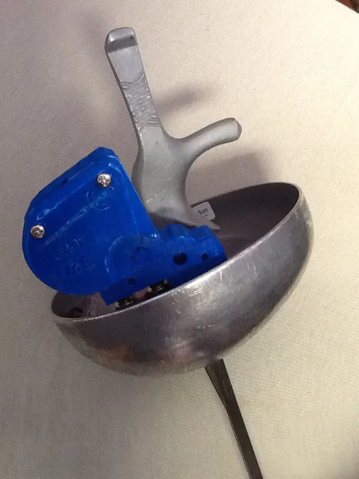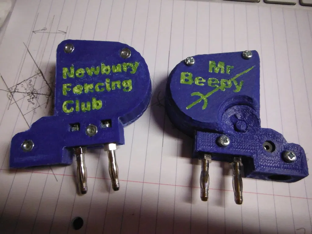 Một bộ hit detector điện tử thụ động đơn giản cho kiếm điện Epee. Thông tin thêm nằm trong phần Instructions. Cái trong hình thì chưa có gắn điện tử bên trong, nhưng thầy dạy đấu kiếm của mình có mấy cái hoạt động bình thường.