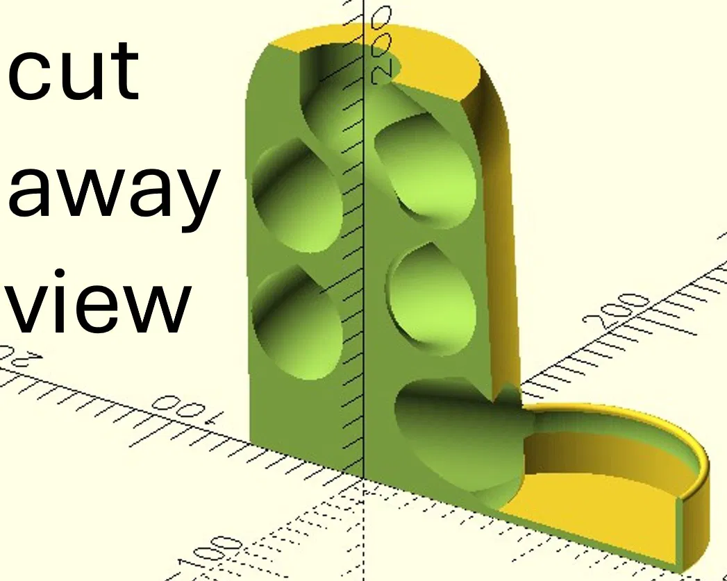 Nhưng ở phiên bản “over engineered” này, quả bóng sẽ đi vòng theo đường xoắn ốc trước khi rơi ra ngoài. Vì vậy nó sẽ ồn hơn và độ trễ lâu hơn so với Object Permanence Box tiêu chuẩn. Nếu bạn in bằng nhựa trong mờ (translucent), bạn có thể thấy quả bóng đi xuống theo đường xoắn ốc. Phần cấu trúc bên trong hơi khó nhìn, nên mình có kèm một hình lỗ thả bóng và thêm một hình dạng cắt (cut away view). Cách khác để thấy đường xoắn ốc là mở trong 3D viewer ở chế độ x-ray.