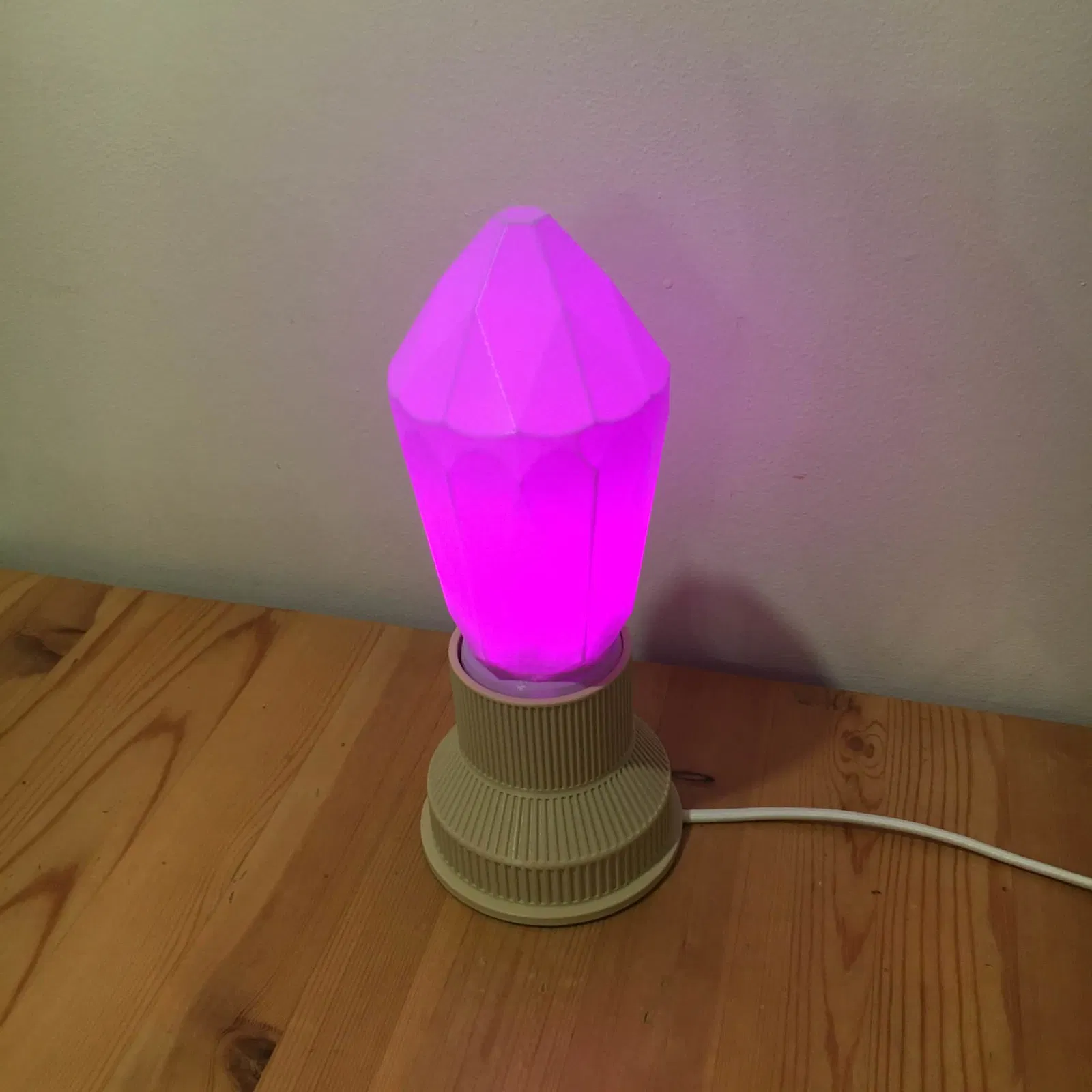 Mẫu 3D đèn ngủ pha lê kiểu lowpoly gồm 2 phần, dùng chuẩn đui E14. Khuyến nghị dùng dây nguồn IKEA STRALA 4m E14 để lắp ráp vừa vặn và sử dụng ổn định.
