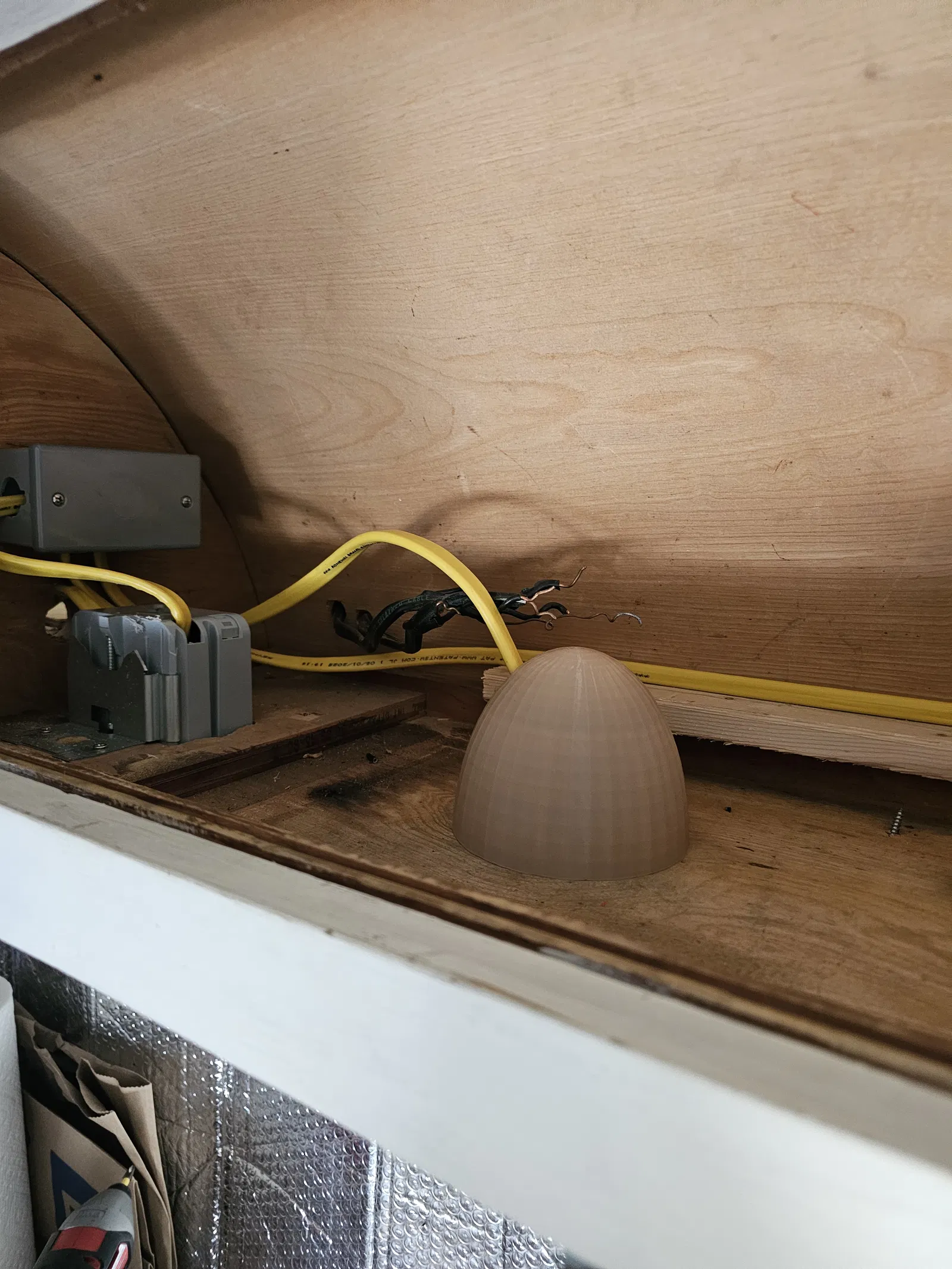 Mình đang đi lại dây cho một chiếc travel trailer cổ, mà mặt sau của cái đèn này trước giờ bị để lộ ra. Nên mình quyết định che phần nối dây cho gọn gàng hơn và làm nhanh cái nắp che này bằng Tinkercad.