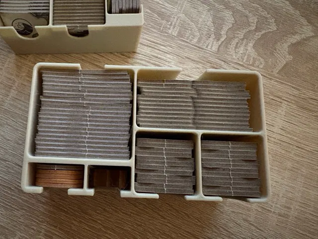 Remix dựa trên inlay của Clever cho Darwin's Journey: có 2 hộp khó lấy tile ra, nên mình thêm các phần lõm (recess) để thao tác dễ hơn. Chỉ cần in đúng như file hiện tại là dùng được.