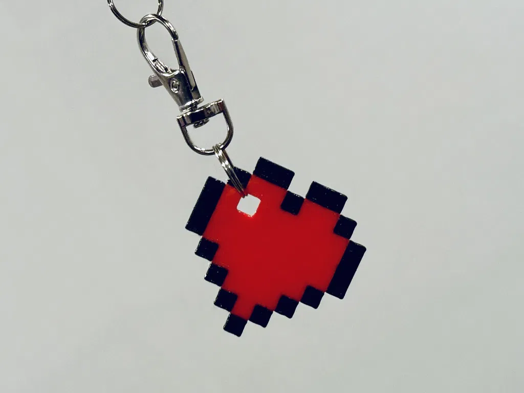 Mẫu móc khóa trái tim kiểu Minecraft, thiết kế để in TPU hai màu (cần H2D). Có bản plain và shaded dạng multi-part STL để tô màu; in trên Darkmoon Satin plate cho mặt trước rất sạch. Hơi khó nhưng in ra rất đã.