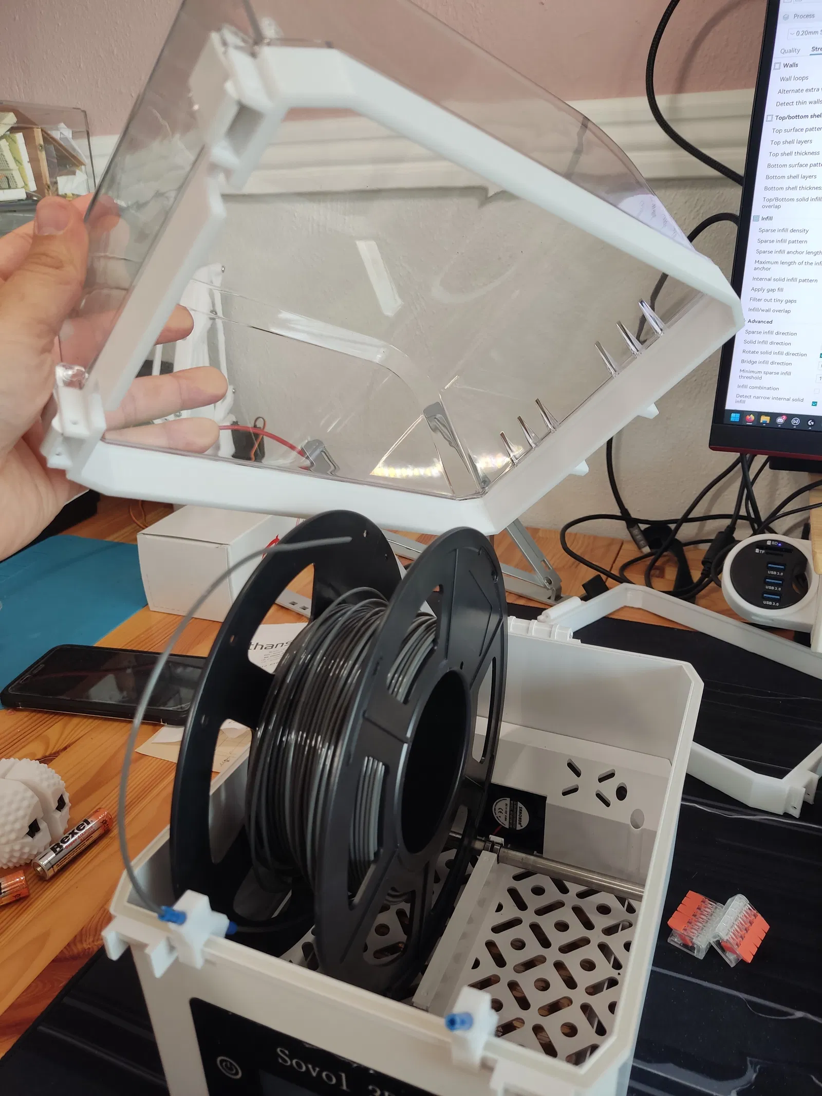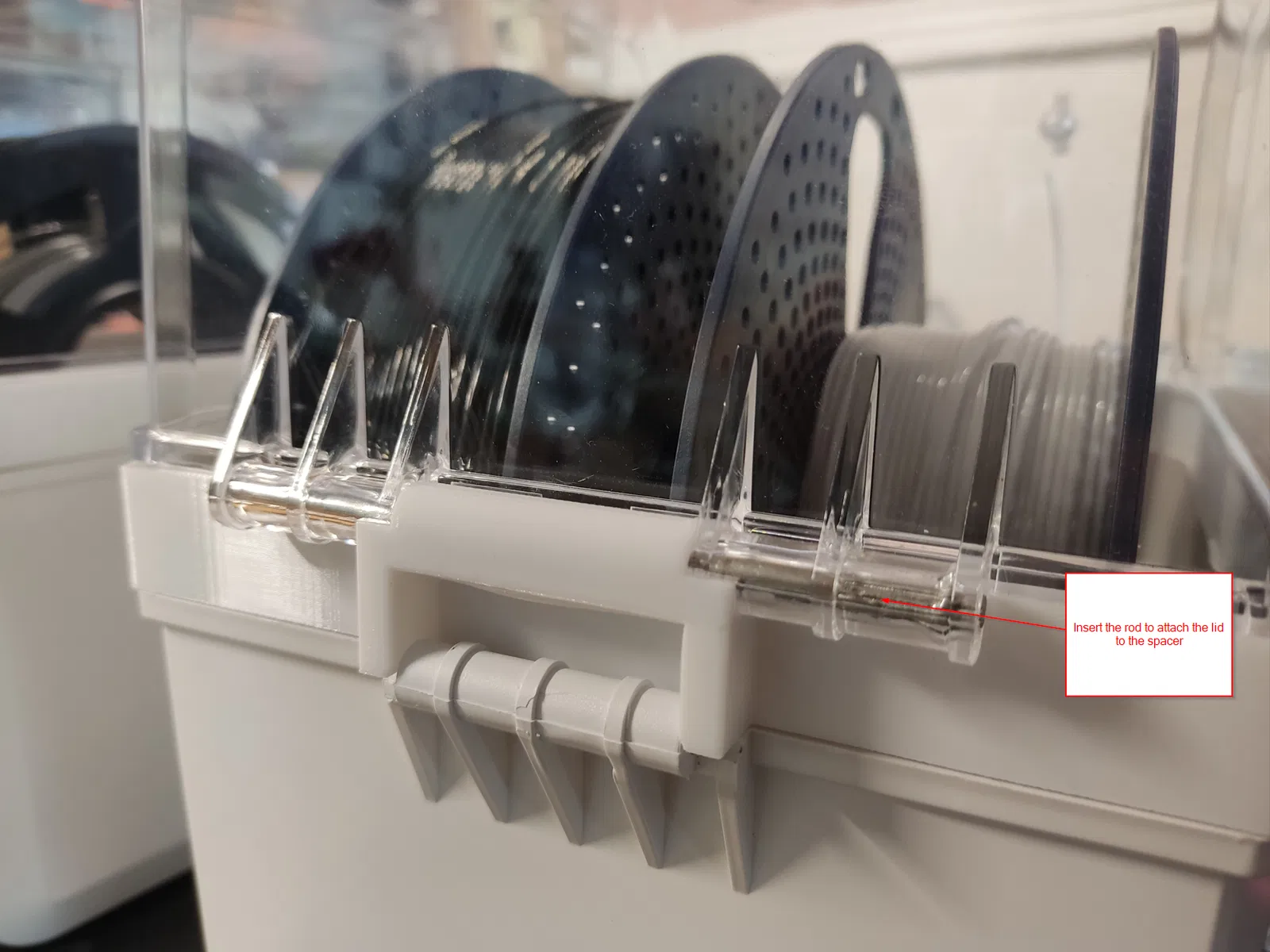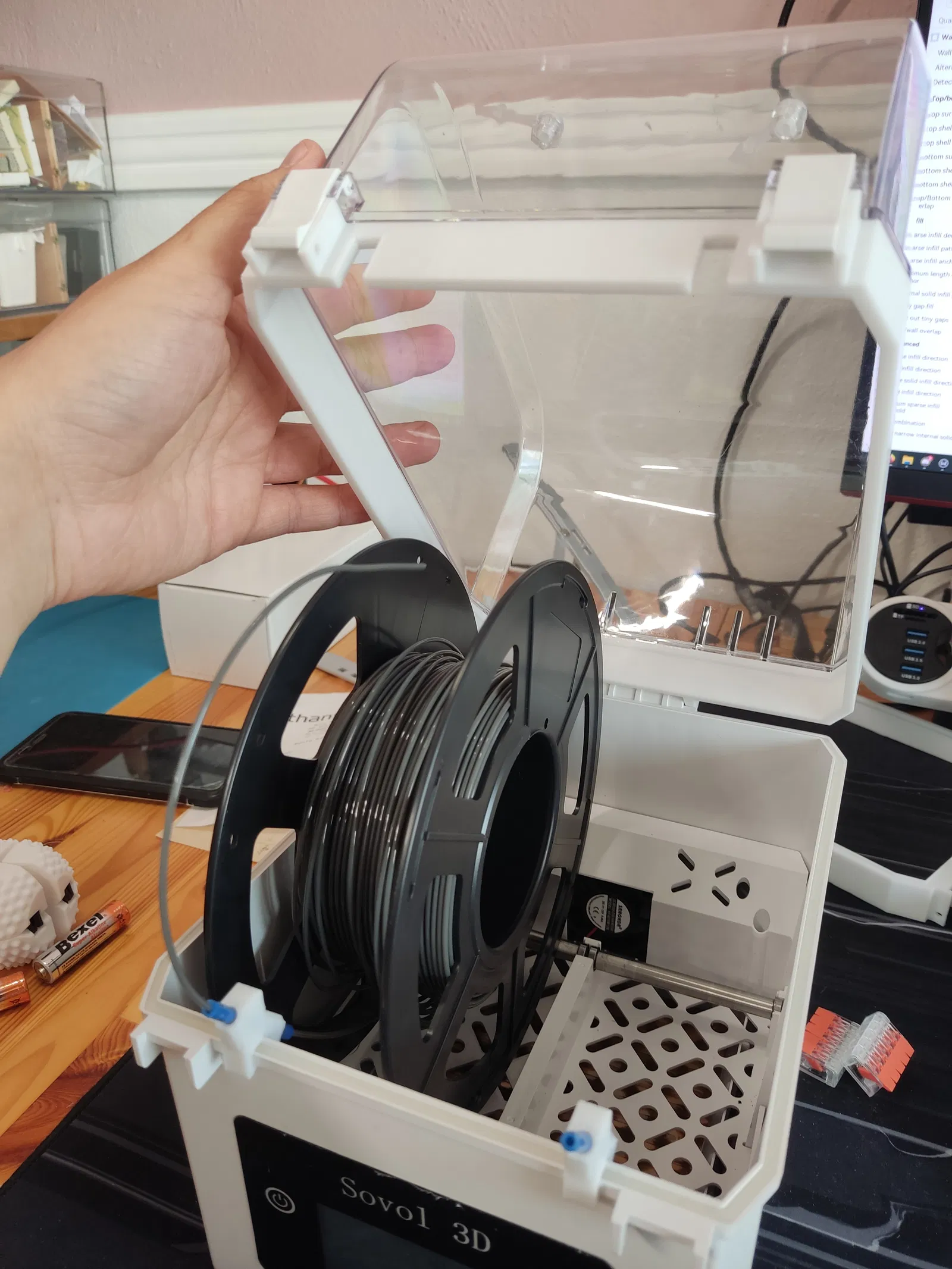 Mục tiêu là bỏ phần bản lề của nắp zin và có một cái nắp tháo lắp dễ dàng, mình có thể nhấc ra ngay cả khi vẫn đang để cuộn filament ở trong máy sấy.