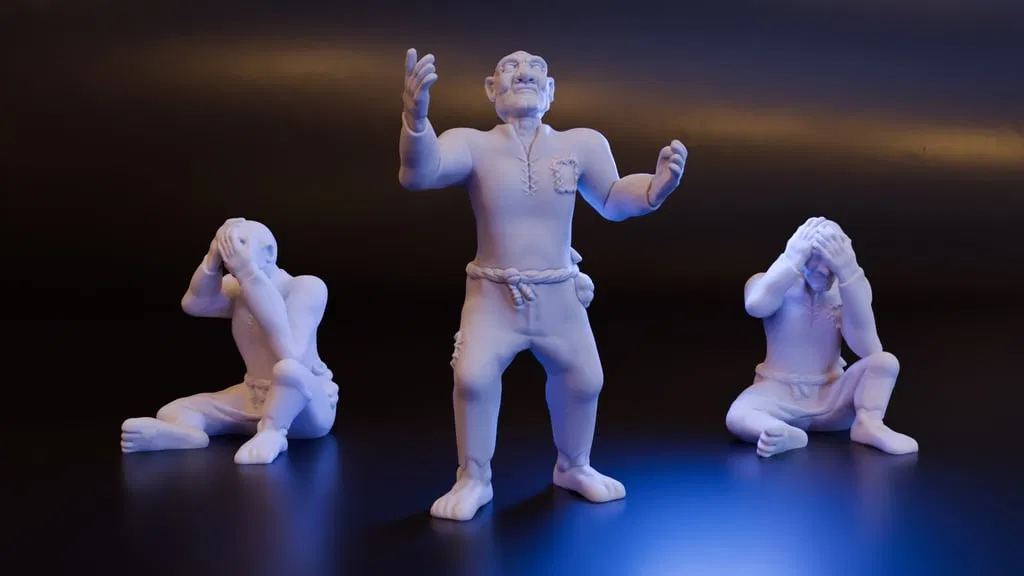 Sau khi xoá các AI model khỏi Thingiverse, mình bắt tay làm một miniature mới hoàn toàn từ đầu. Đây là một human commoner, mình đặt tên là “Sad Man”. Mình thấy ra cũng ổn, nhưng đúng kiểu “Đừng bỏ việc chính của bạn” luôn. Mà thôi, trễ rồi!