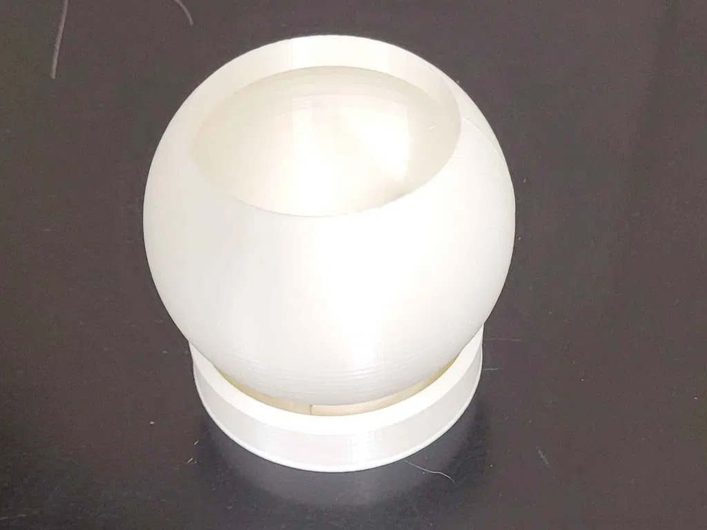Mẫu chậu hình cầu nhỏ đường kính 80 mm, in ra hơi nhỏ hơn dự tính. Phù hợp trồng succulents hoặc đặt tea light bên trong tuỳ độ dày thành và infill. Có thể cần supports ở phần đáy để in sạch hơn.