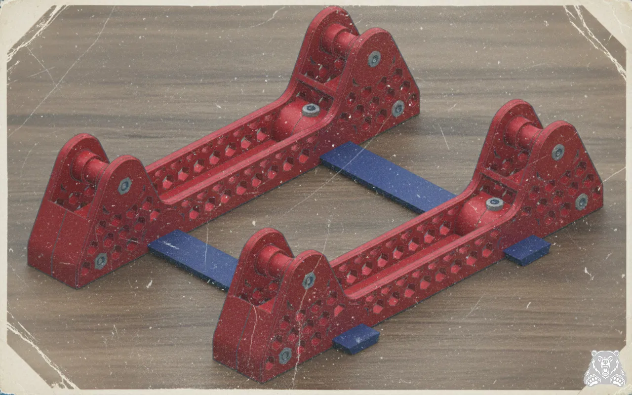 Sync-Bridge: Mình thêm một cầu cơ khí để khóa hai thanh ray lại với nhau, đảm bảo chúng tách ra đều nhau thay vì lệch/lạc như bản gốc.