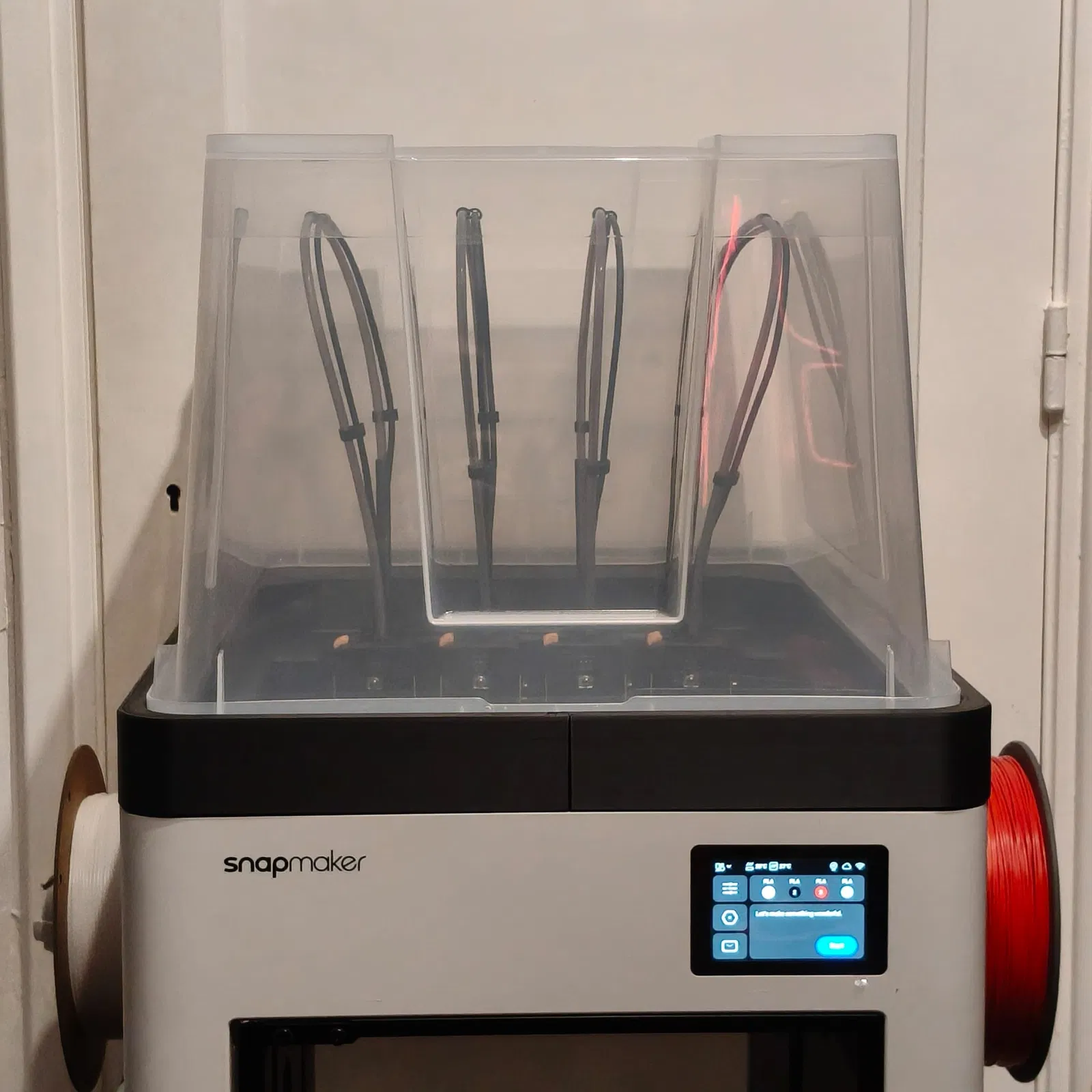 Phiên bản Slim của SAMLA Hat cho Snapmaker U1, thiết kế nằm sát phần đỉnh nên không che các mặt bên. Giảm còn khoảng nửa số chi tiết, in gọn trên 3 plate, thời gian khoảng 12,5 giờ và gần như đủ với 1 cuộn 550g.
