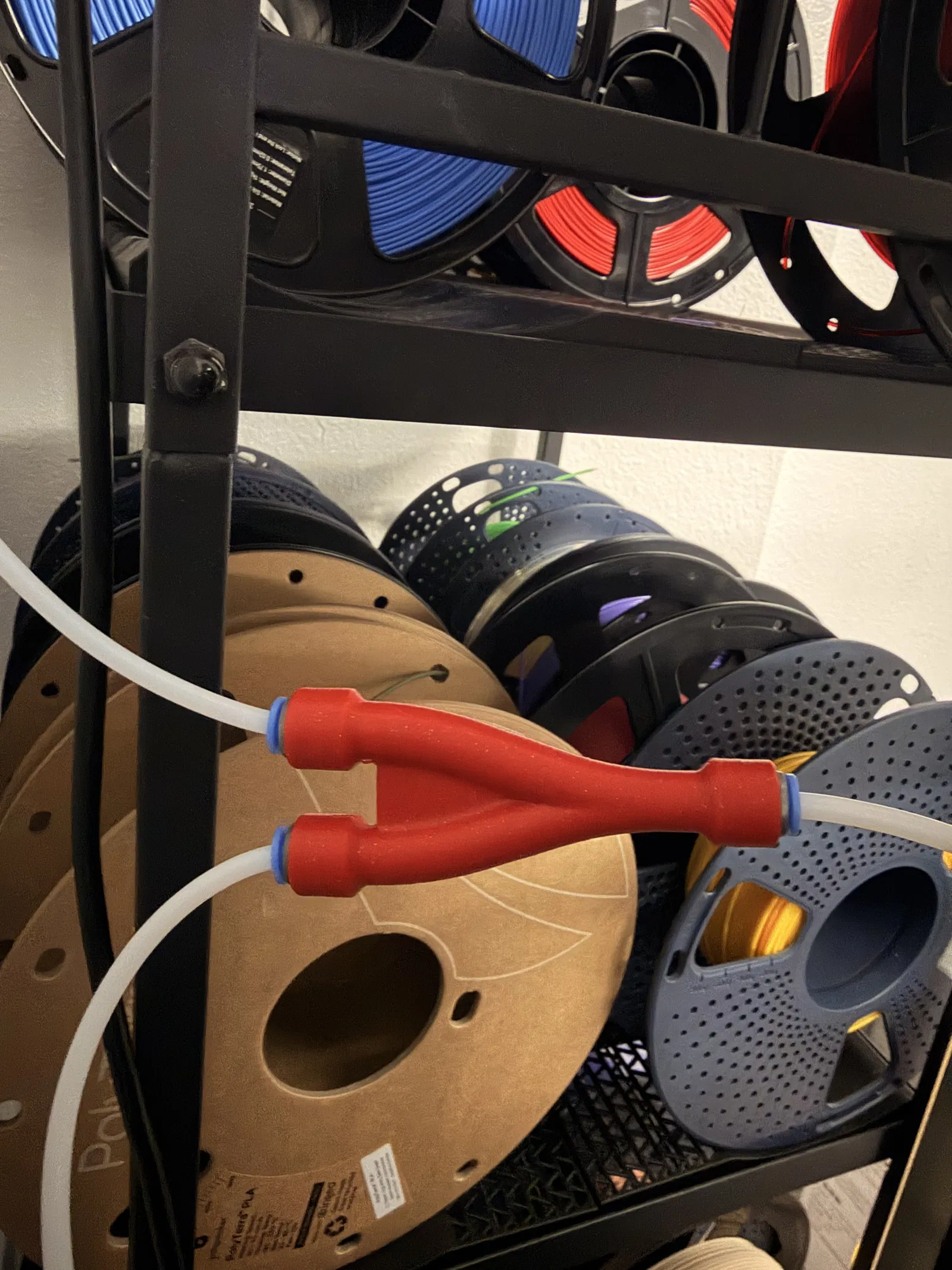 Đây là một mẫu Y-splitter/combiner cho filament hiệu năng cao, được thiết kế riêng để chuyển filament mượt và cấp đa vật liệu ổn định. Sau khi loay hoay tìm một splitter có đường dẫn filament bên trong thật sự liền mạch mà không ra, mình làm phiên bản này để đảm bảo không bị vướng hay tạo điểm ma sát khi đổi filament.