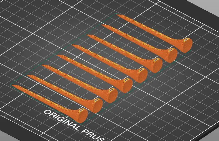 Tee bóng golf (Golf Ball Tee) thiết kế để in nằm phẳng trên mặt bàn in, giúp bản in đẹp hơn và chắc hơn. Dài 80mm; khuyến nghị in 100% infill, layer height 0.3mm, dùng PETG hoặc PLA.
