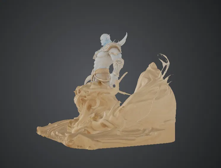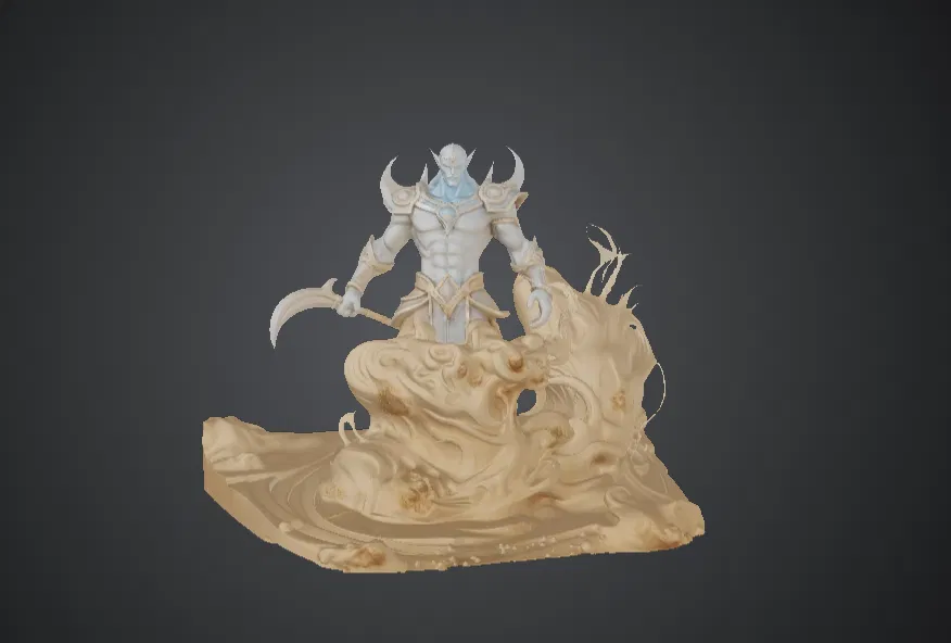 Trang bị thanh scimitar cong và khoác bộ giáp sa mạc chạm khắc tinh xảo, vị champion này đứng trên một khối sand elemental xoáy cuộn, bùng lên quanh người như một cơn bão sống. Phần đế tuôn chảy tạo cảm giác chuyển động mạnh và tăng chiều sâu câu chuyện, biến mẫu này thành một tâm điểm trưng bày thật sự.