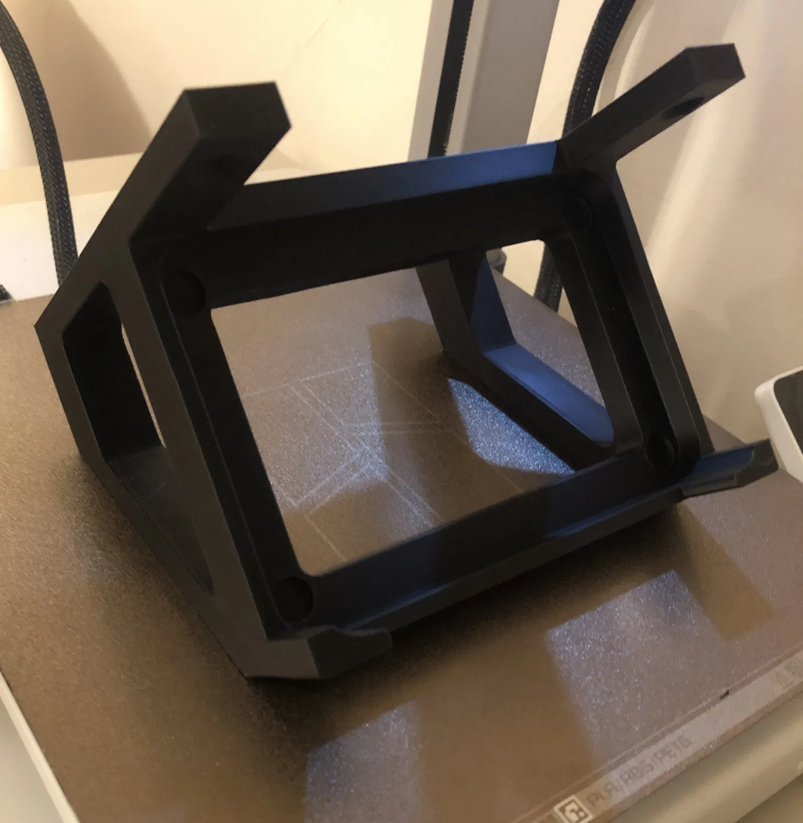 Mình in bằng PLA trên Bambu A1. Mình có dùng supports nhưng thật ra các lỗ bắt vít không nhất thiết phải cần supports. Phần supports cho đoạn treo dài ở giữa thì quan trọng.