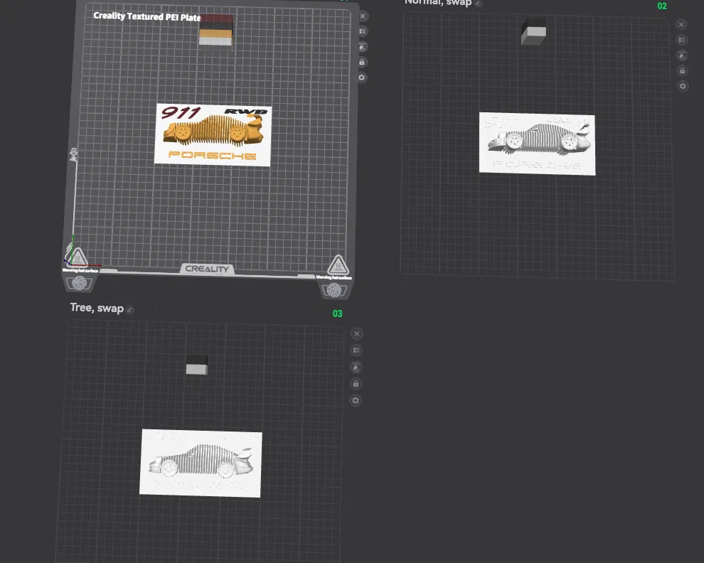Mình biết ngoài kia cũng có vài mẫu tương tự, nhưng mình muốn thêm “chất” riêng và cách làm của mình cho mẫu này, vì mình thích phần bánh xe/mâm nổi bật hơn, đồng thời các chi tiết phía trước và phía sau được nhấn rõ ràng hơn. Đây là một tác phẩm layered sculpture của Porsche 911 RWB. Khi in sẽ cần một ít supports; nhớ gỡ thật cẩn thận vì bản in khá mỏng manh. Có kèm file dự án 3MF cho nhiều tuỳ chọn in khác nhau:
