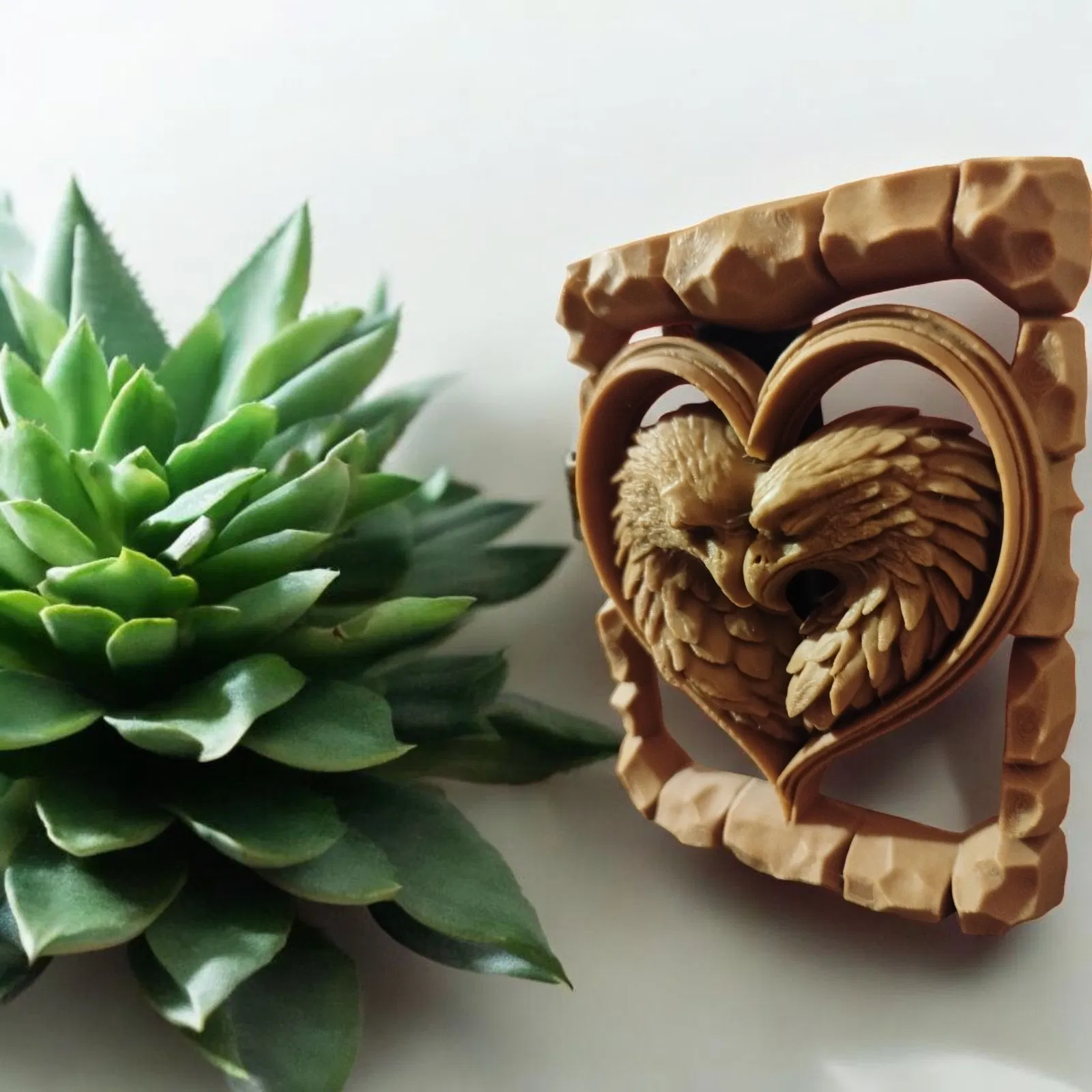 “Wings of Loyalty” là mẫu 3D trang trí với hai chú chim ghép cánh thành hình trái tim, giàu tính biểu tượng. Phù hợp làm đồ treo tường; khuyến nghị in chi tiết vừa và dùng wood filament cho vẻ mộc mạc.