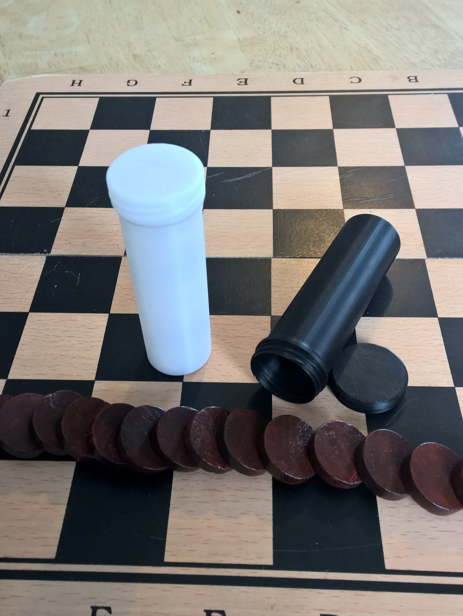 Hộp đơn giản để cất quân backgammon. Mỗi hộp đựng được 15 quân kích thước 6x24mm. Thiết kế tối ưu để in Spiral vase (vase mode), thành mỏng gọn và in nhanh với layer height 0.2mm.