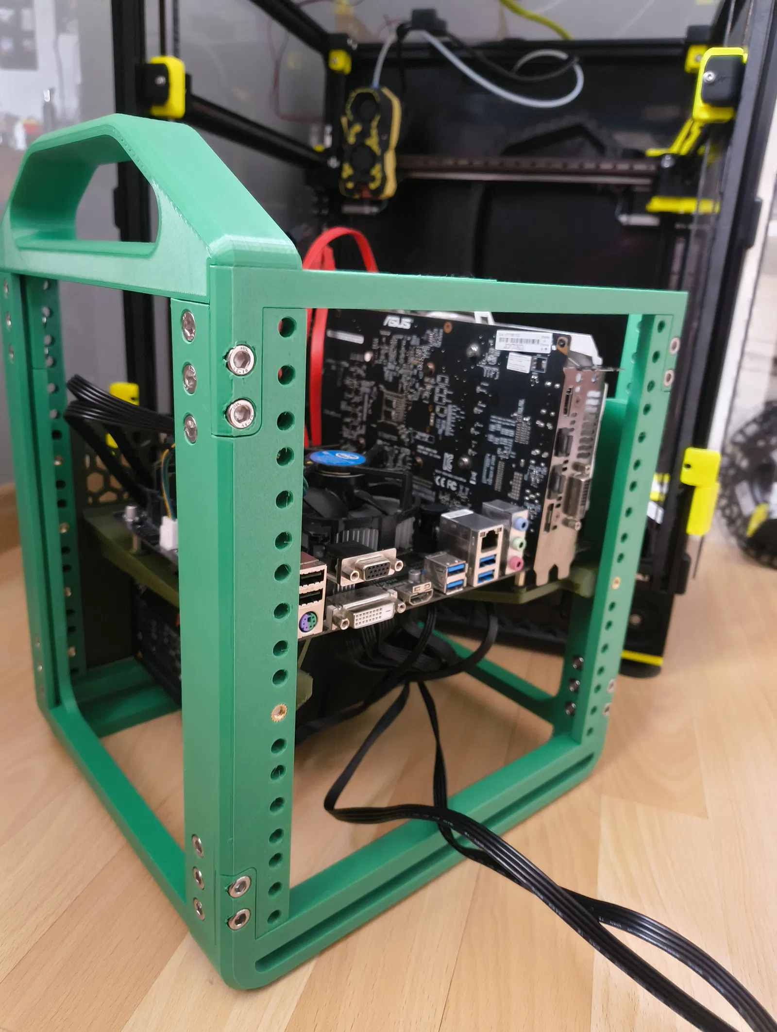 Mình làm cái này vì nhiều rack plate có sẵn либо là không fit đúng với combo mATX + GPU, либо là bắt dùng quá nhiều supports “nguy hiểm”, dễ làm hư chi tiết hoặc khiến in bị fail. Thiết kế này né được mấy vấn đề đó mà vẫn chắc chắn và dễ in.